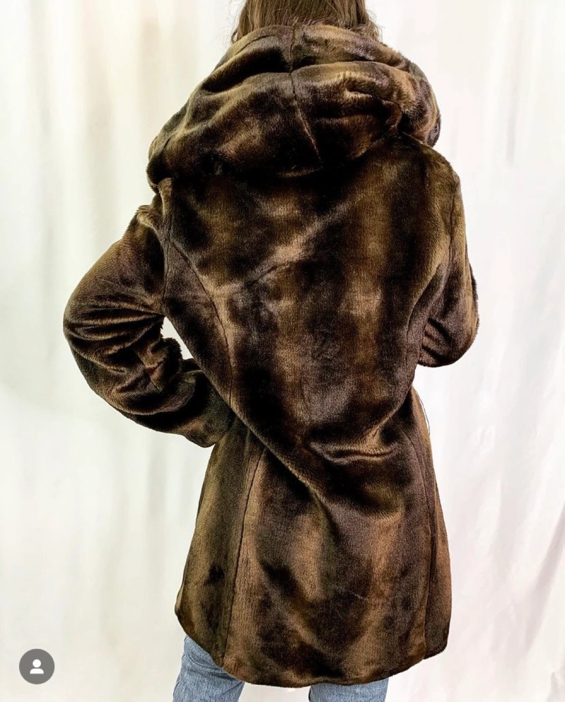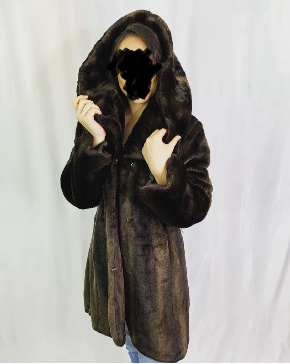 Vintage Women's brown faux fur coat. This is silky soft and luxurious. With large hood and pockets. Very warm.