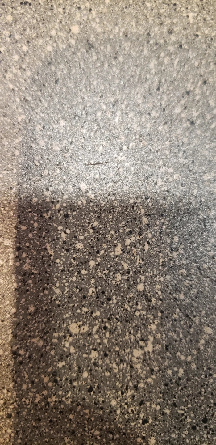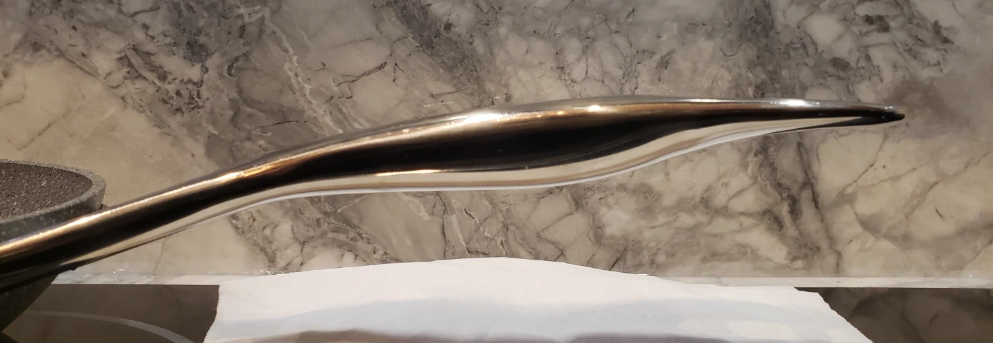 Very slight darkening from use and one small scratch in the larger pan surface (shown in photo). Signifying as 'good' quality. Well cared for 'top of the line' Ballarini pans.