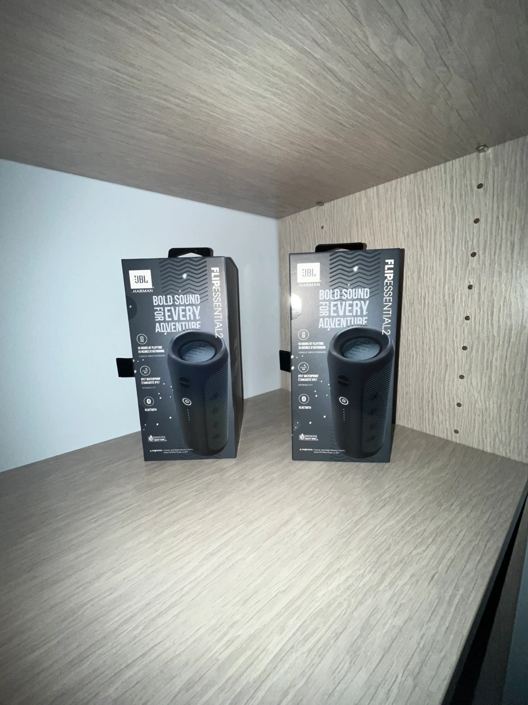 Two brand new JBL Flip Essential 2 portable Bluetooth speakers. Waterproof design. Bold sound for every adventure. Perfect for travel or home use. Excellent quality audio.