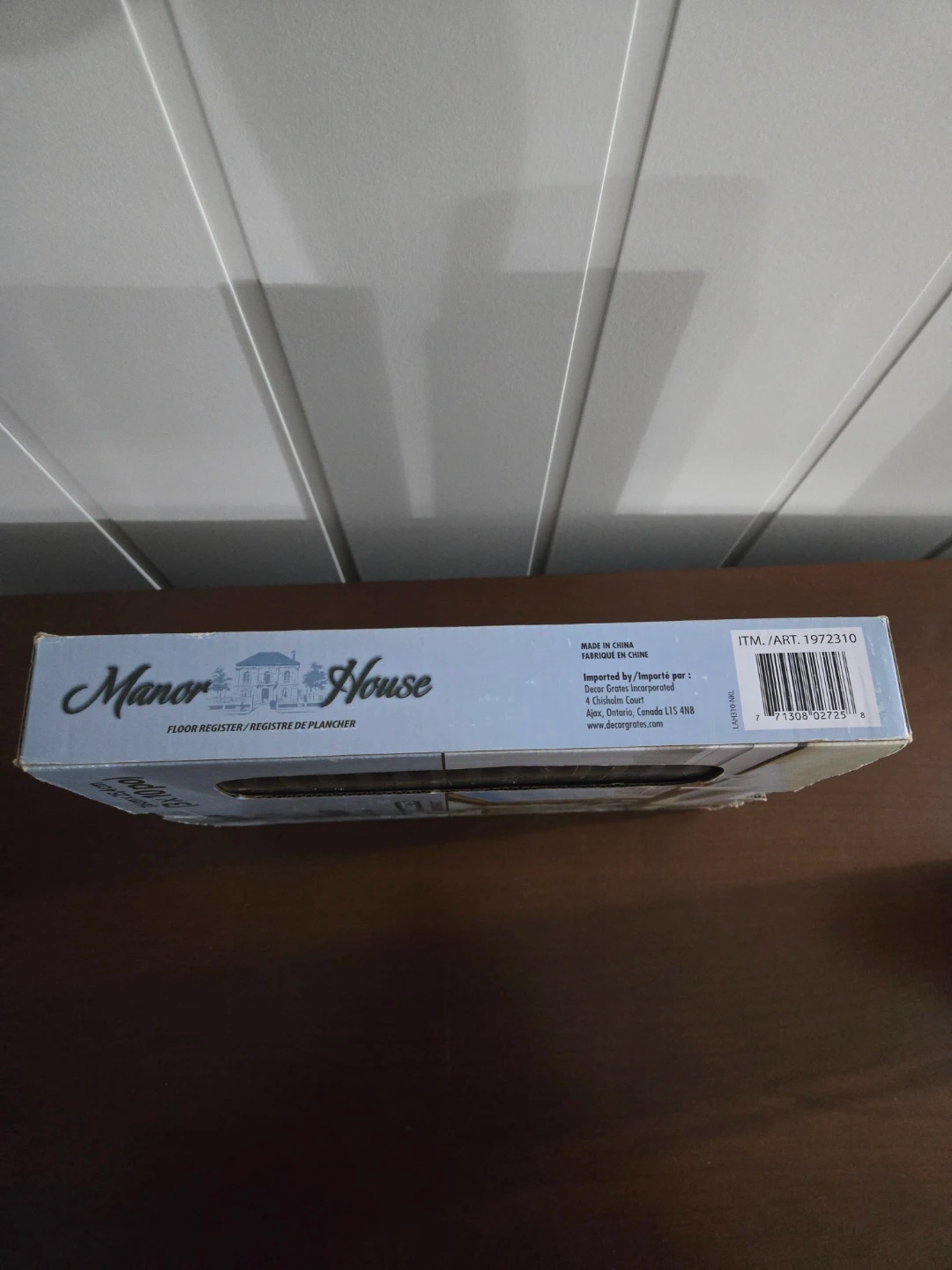 This is a 2-pack of Manor House Louvered Arch floor registers. Dimensions are 7.6 cm x 25.4 cm (3 x 10 inches). Pickup only mississauga.