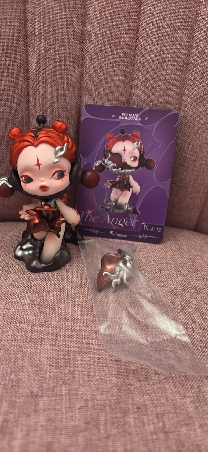 This is a POP MART Skullpanda 'The Anger' collectible figure. It comes with a display card and an accessory. This figure is part of the "The Anger" series. Selling it for retail price both for $61 or $37.79 each