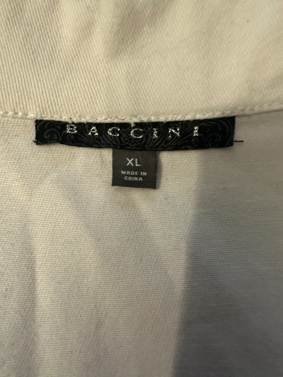 Selling a Baccini white moto jacket in size XL. It's a stylish jacket that's perfect for adding a bit of edge to any outfit! The jacket is in great condition and ready for a new owner