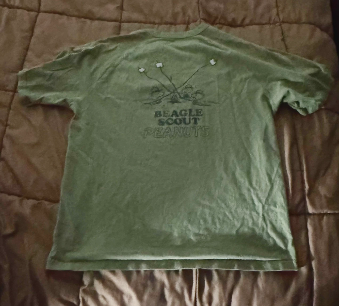 This Uniqlo t-shirt features a fun graphic on the back with "Beagle Scout Peanuts". It's made of comfortable cotton. Great for any Snoopy fan!