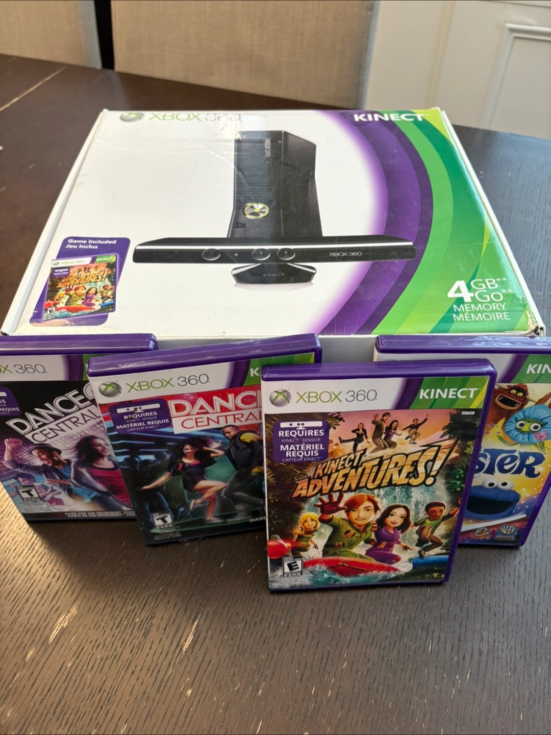 Selling an Xbox 360 S console with Kinect. Comes with 4 controllers, a chat pad, and a headset, all tested and in working order. It comes with a few games as well. Perfect for some family fun or reliving some classic gaming moments!