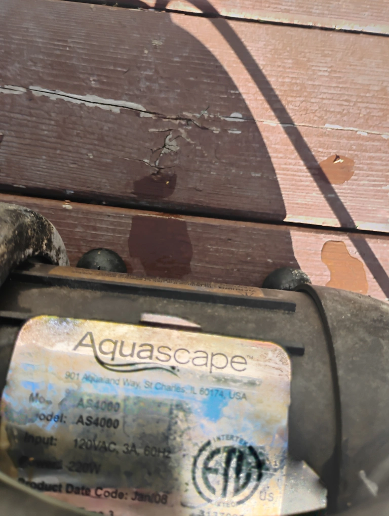 Selling an Aquascape AS4000 pond pump. It's in good working condition and ready to keep your pond sparkling! It requires 120VAC, 3A, 60Hz input