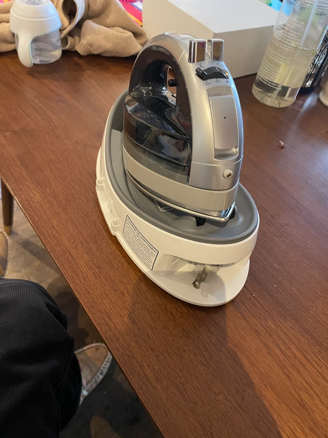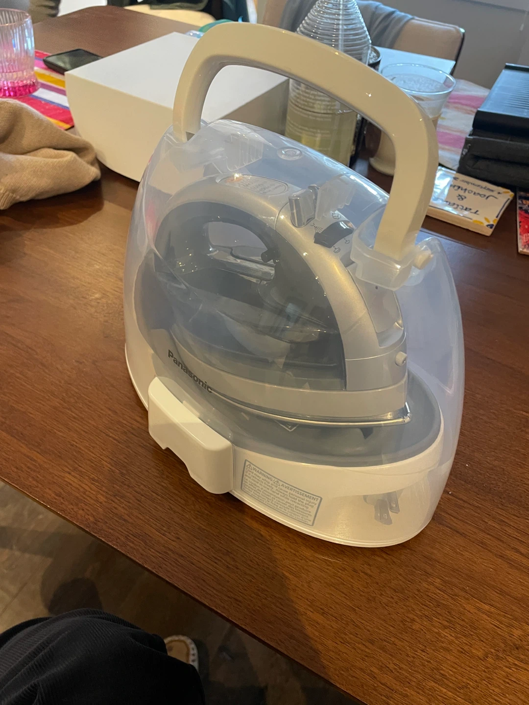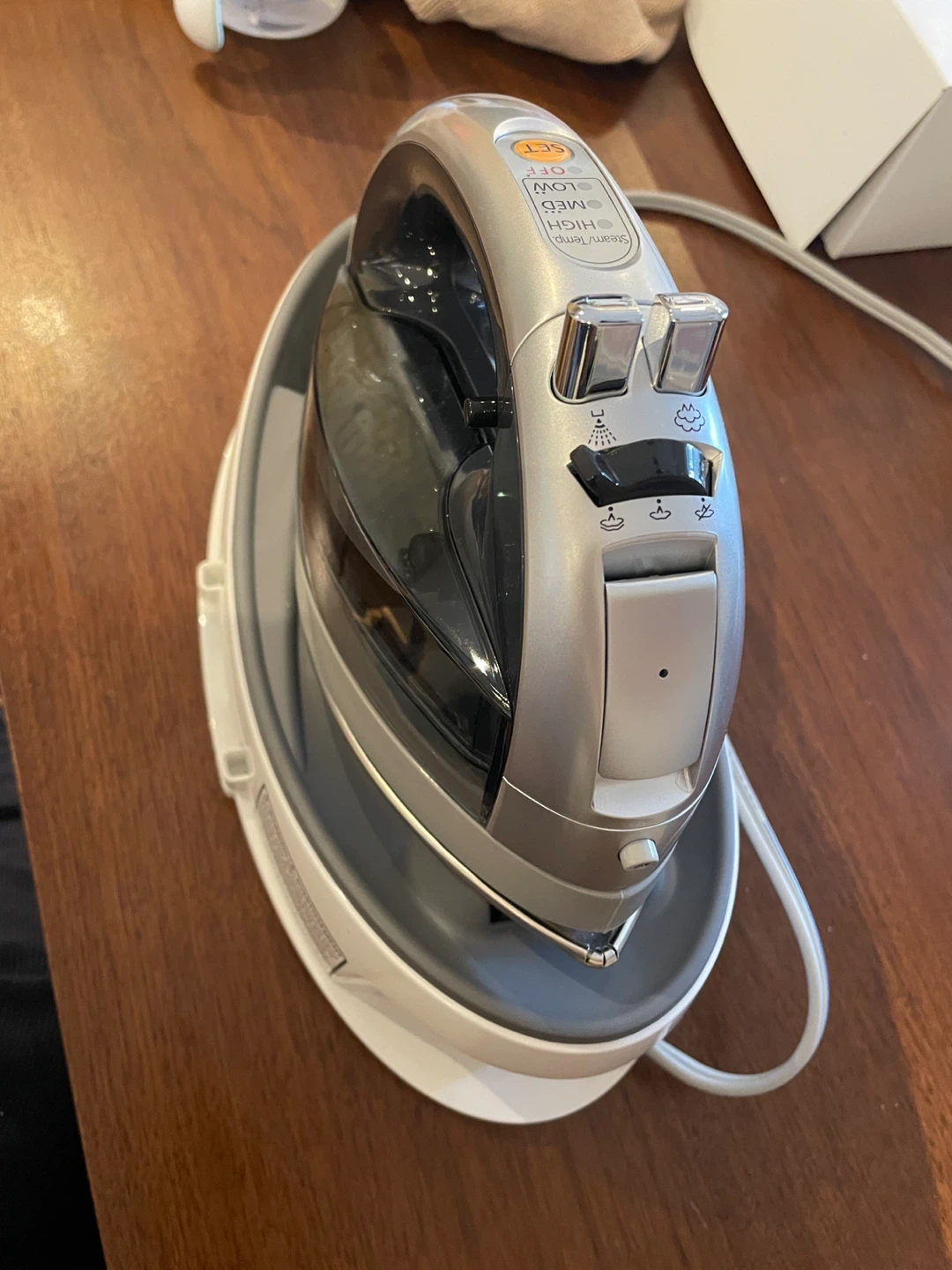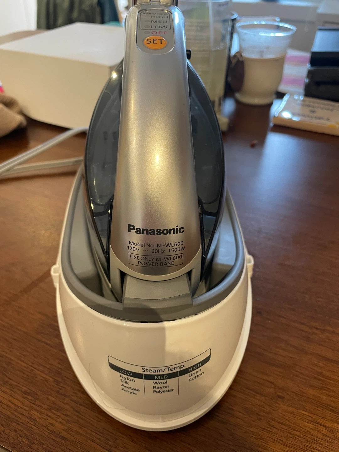 Selling a Panasonic NI-WL600 cordless iron used once. It's in great shape and ready to go! This model offers a smooth ironing experience without the hassle of cords. The included power base makes it easy to keep the iron charged and ready for use. Perfect for quick touch-ups or larger ironing tasks!