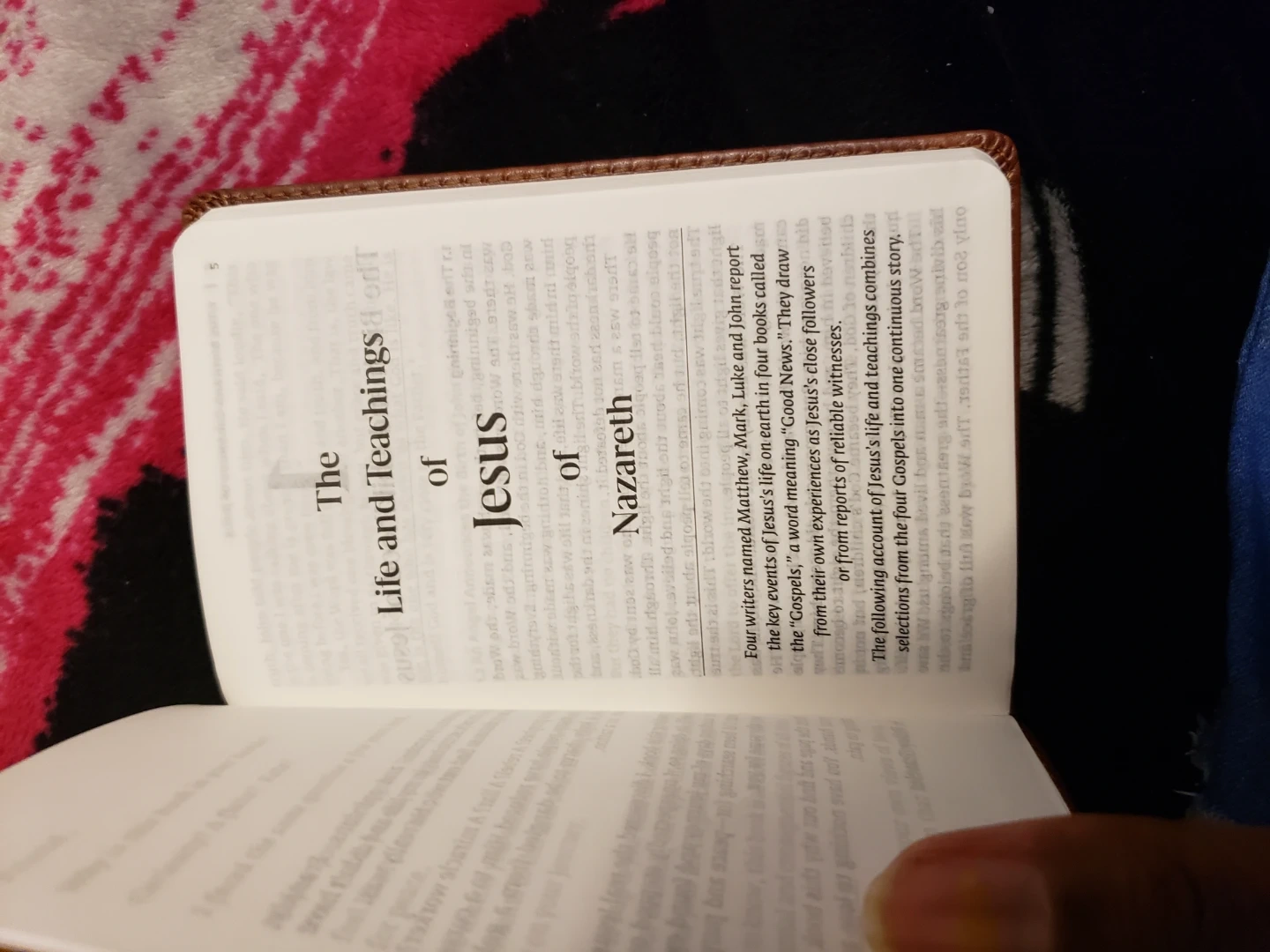 A book detailing the life and teachings of Jesus of Nazareth. Features accounts from Matthew, Mark, Luke, and John. The following account of Jesus's life and teachings combines selections from the four Gospels into one continuous story.