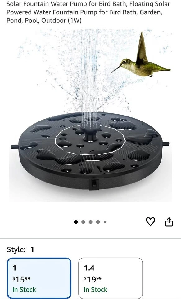 New Solar Fountain Water Pump for Bird Bath, Garden, Pond, Pool, Outdoor (1W)
