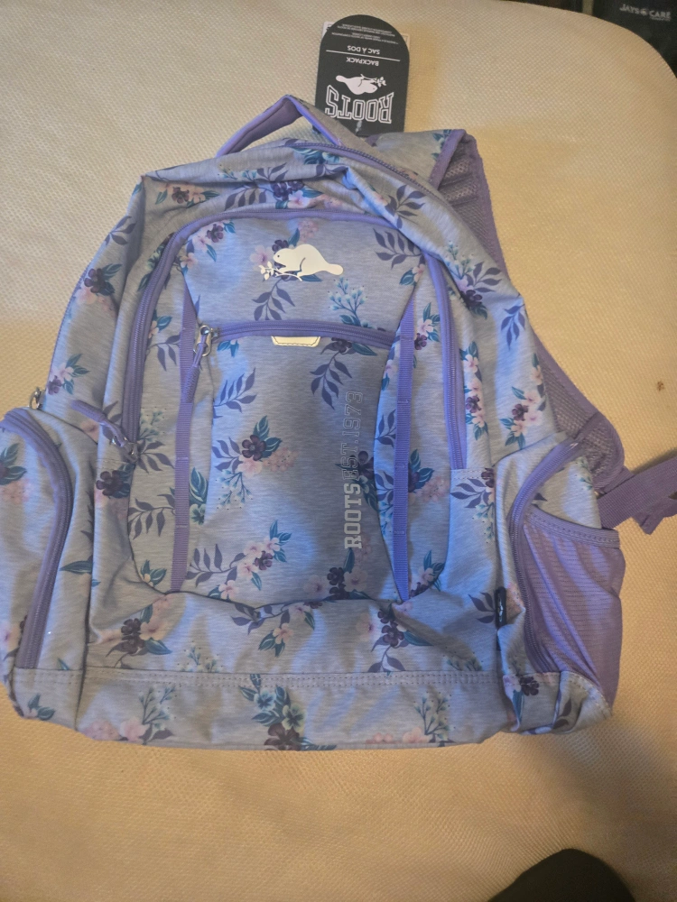 Selling a cute Roots backpack and matching lunch bag! The backpack has a floral pattern and is in great condition. Perfect for school or day trips. The lunch bag is insulated to keep your food fresh.