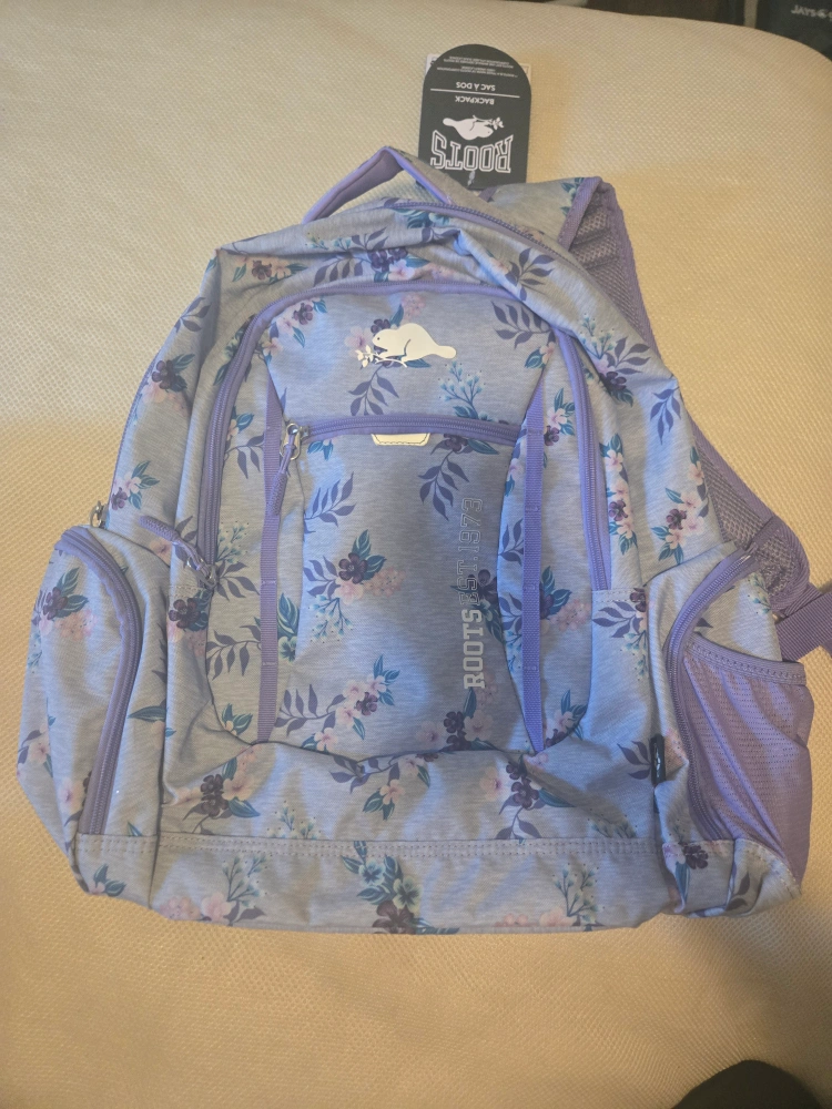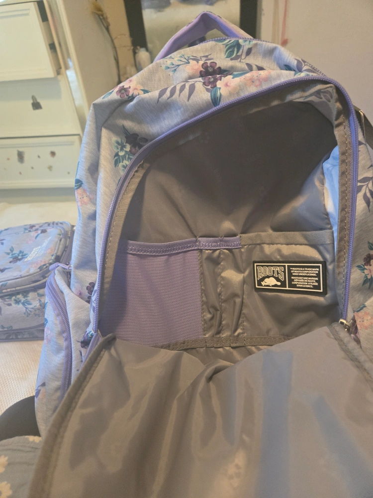 Selling a cute Roots backpack and matching lunch bag! The backpack has a floral pattern and is in great condition. Perfect for school or day trips. The lunch bag is insulated to keep your food fresh.