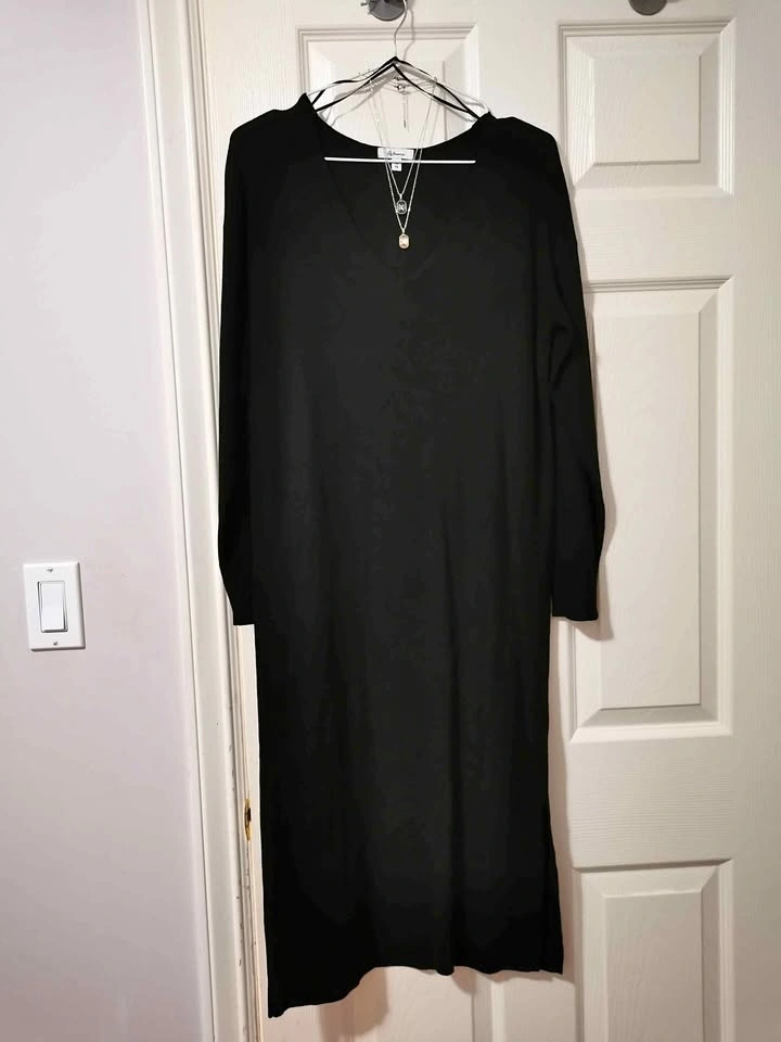 Reitmans Black V-Neck Sweater Dress + Necklace Set