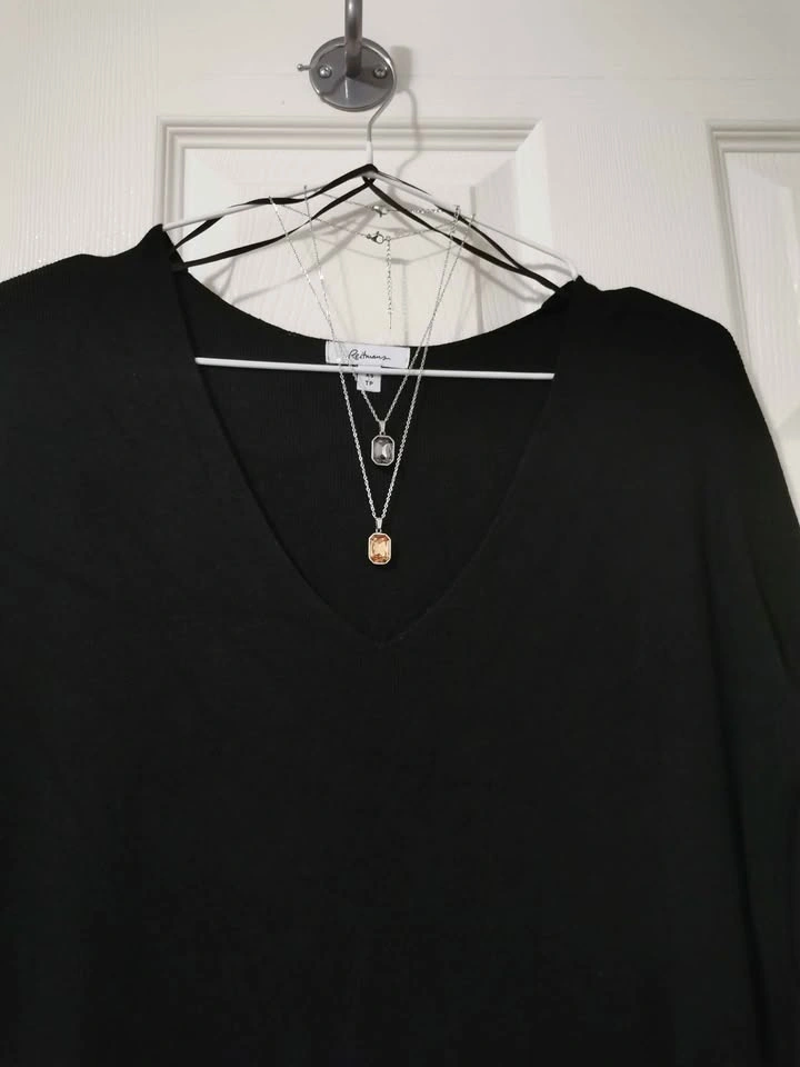 Reitmans Black V-Neck Sweater Dress + Necklace Set