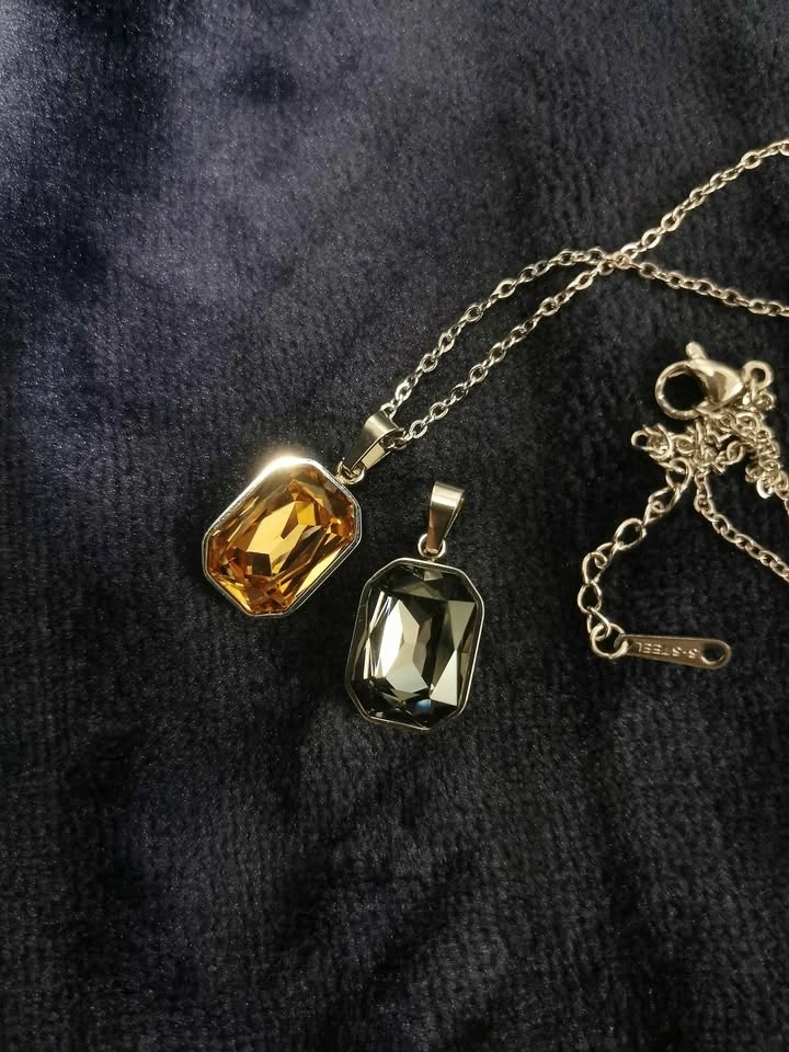 Necklace set - Gemstones are glass or zirconia. Stainless steel chains and pendants.