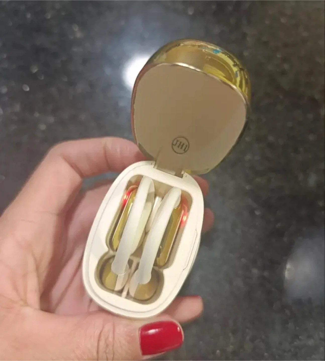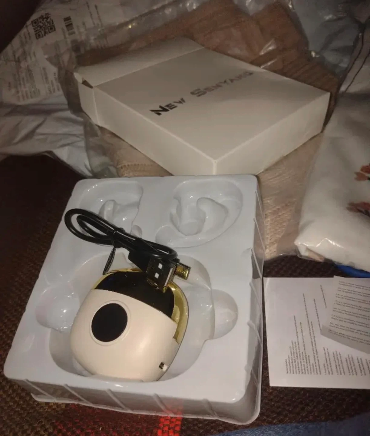 Brand new wireless earbuds with a stylish gold and white charging case. Includes charging cable and manual. These earbuds are great for listening to music on the go!