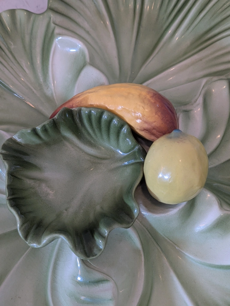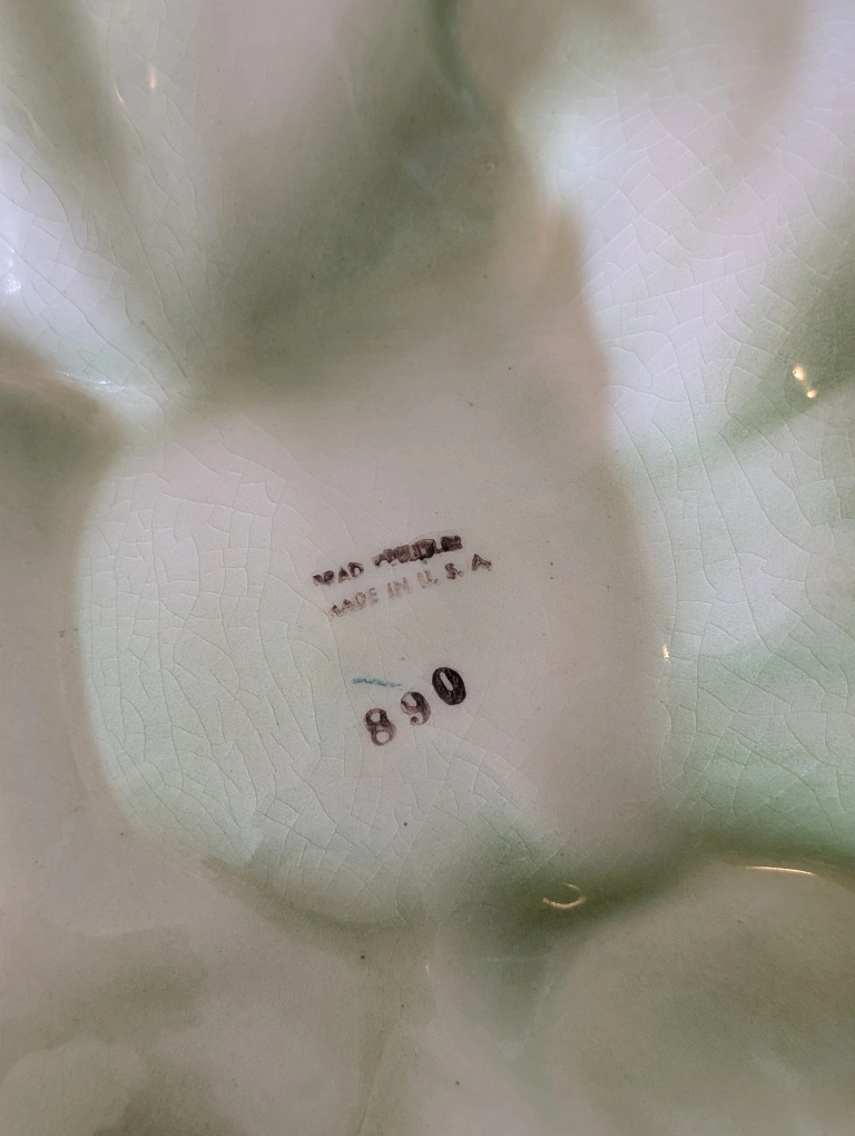 Selling a beautiful Napco ceramic cabbage leaf dish! It's in great shape and would look lovely as a centrepiece or serving dish. The piece is marked 'Napco Made in U.S.A.' on the bottom.