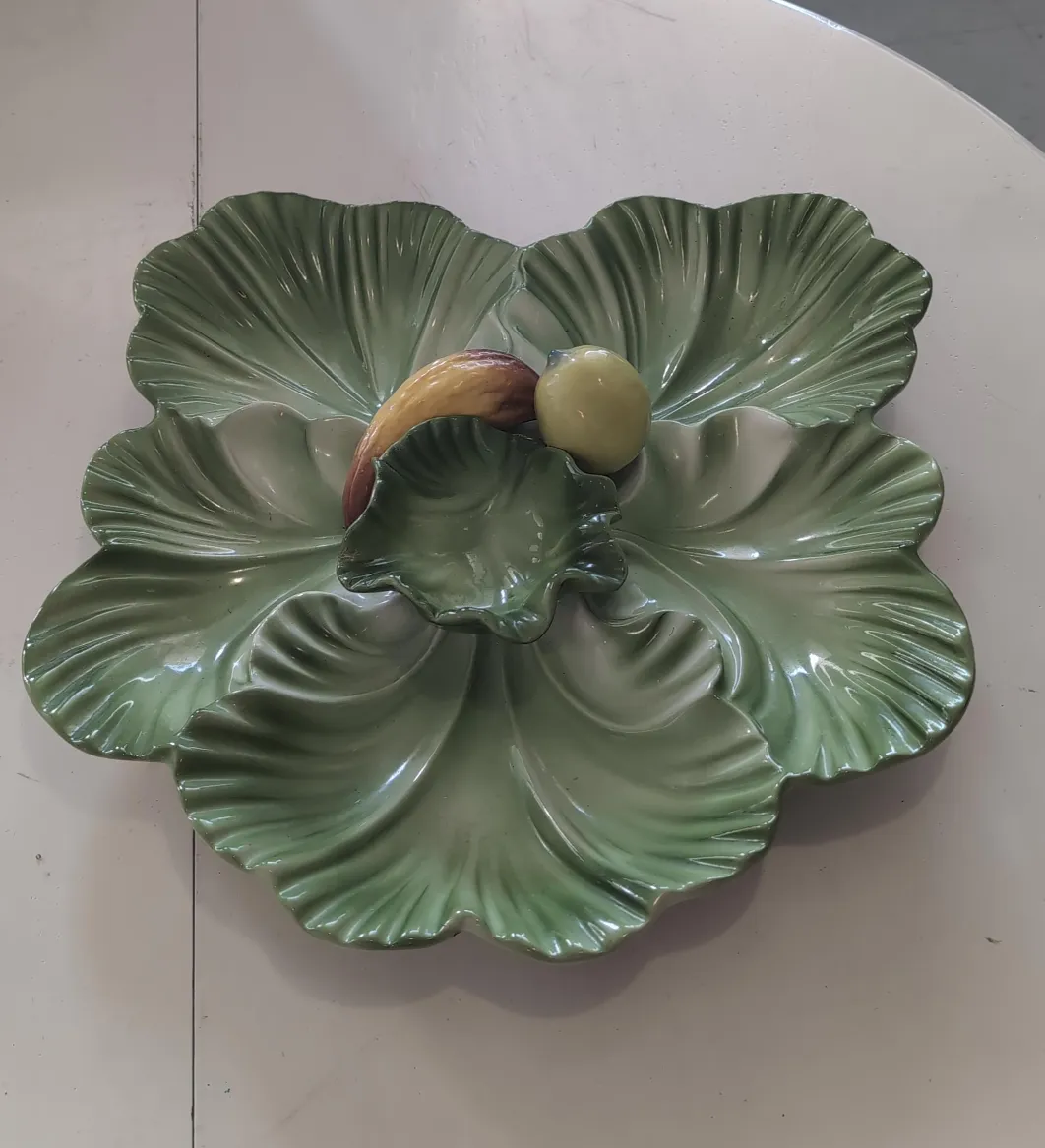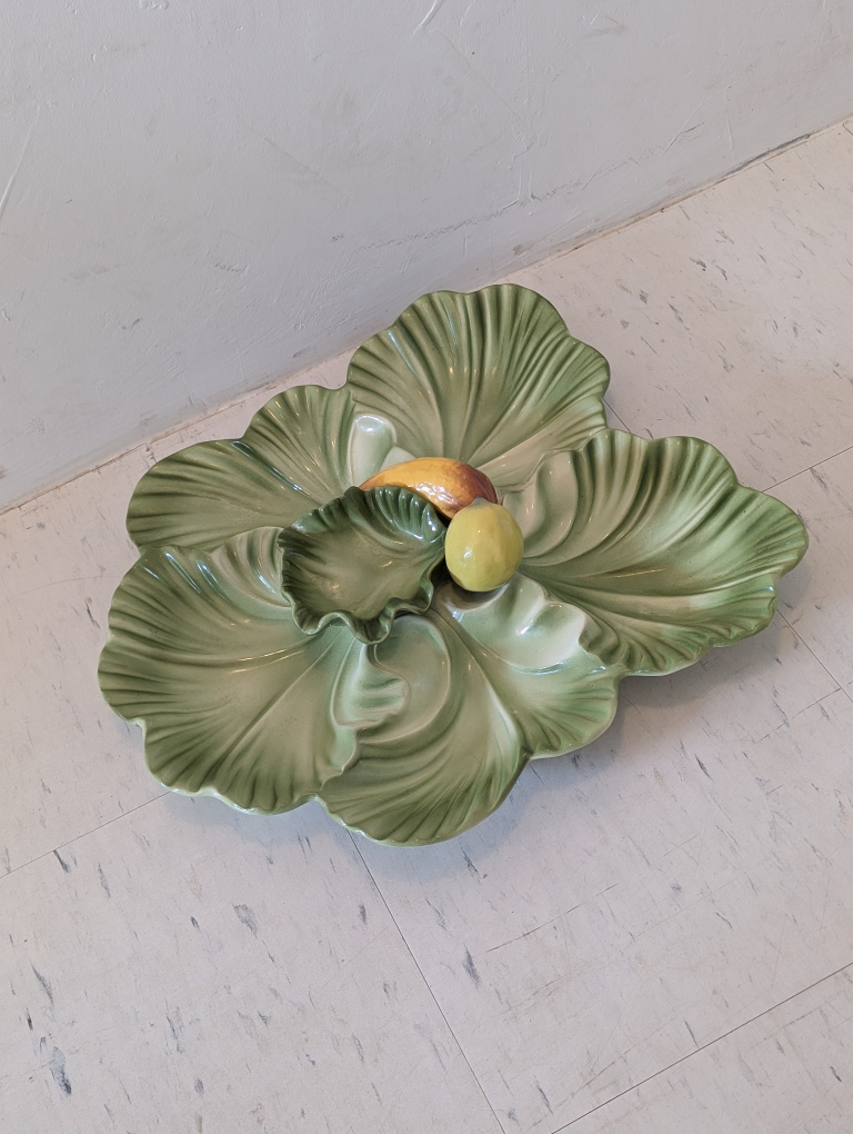 Selling a beautiful Napco ceramic cabbage leaf dish! It's in great shape and would look lovely as a centrepiece or serving dish. The piece is marked 'Napco Made in U.S.A.' on the bottom.