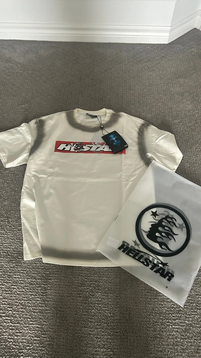 Get ready to turn heads with this brand new Hellstar t-shirt in a striking red and white design, size small! It's straight out of the package and ready to make a statement. Brand: Hellstar. Colour: Red and White. Size: Small. Condition: Used Like New With Tags. I've checked online and similar tees are selling between $100-$200, so I've priced mine competitively. If the ad is up, the shirt is available – no need to ask, just get ready to rock!