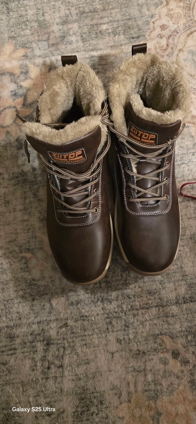 These ZITOP winter boots are made of faux leather and feature a warm, fuzzy lining. They have laces for a secure fit and a rugged sole for traction. Perfect for keeping your feet toasty during colder months!