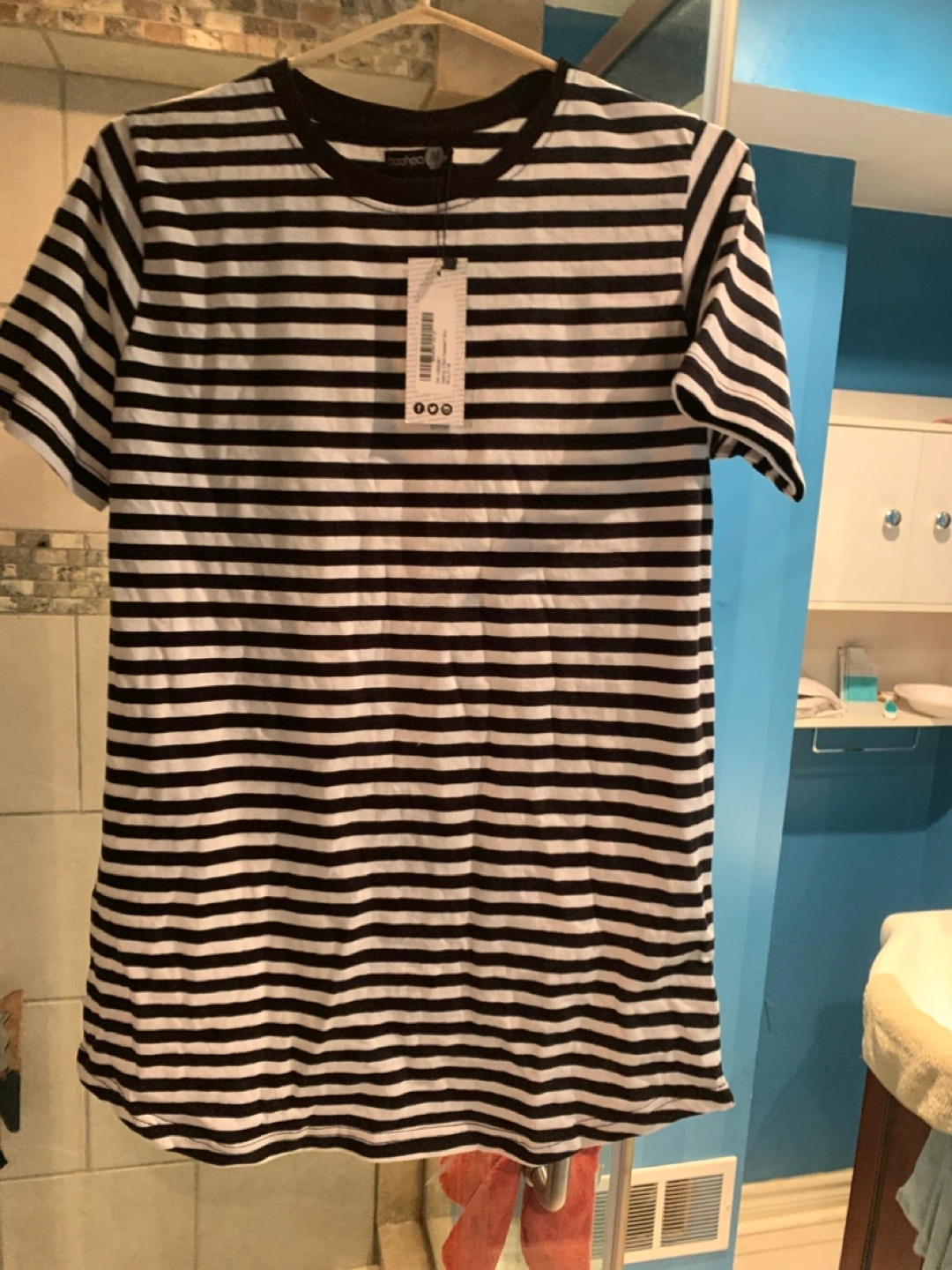 I'm selling a Boohoo maternity oversized T-shirt in a black and white stripe! BNWT never worn