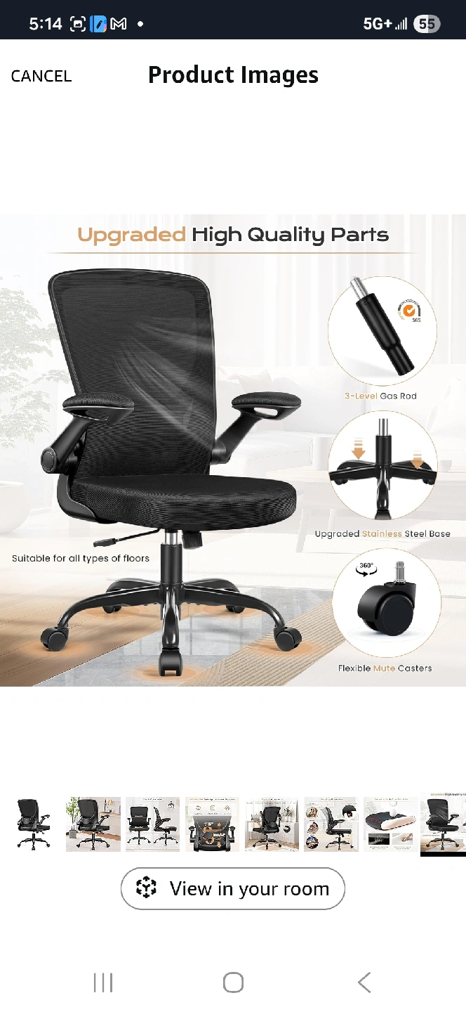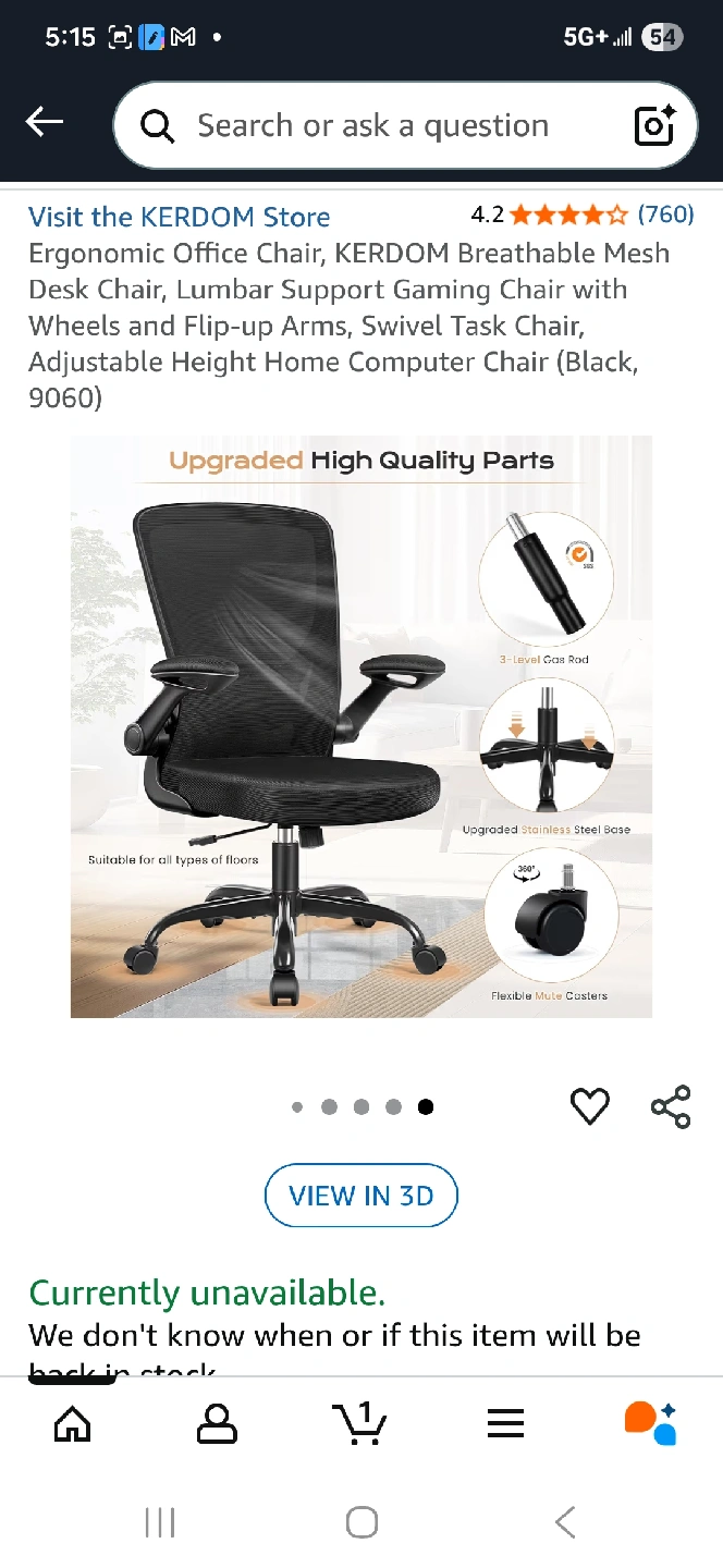 Ergonomic Office Chair, KERDOM Breathable Mesh Desk Chair, Lumbar Support Gaming Chair with Rocking Function, Wheels and Flip-up Arms, Swivel Task Chair, Adjustable Height Home Computer Chair (Black, 9060) https://a.co/d/arC5SQd