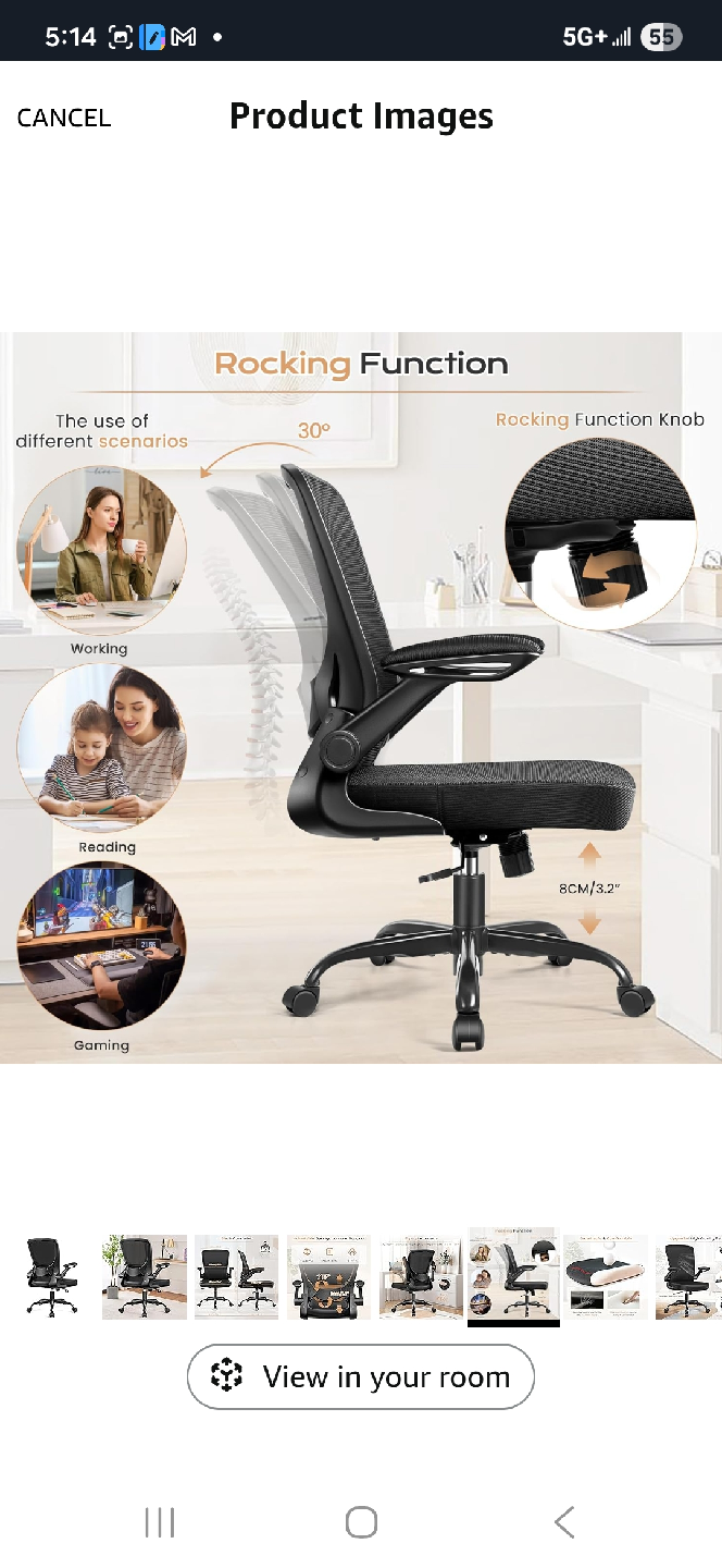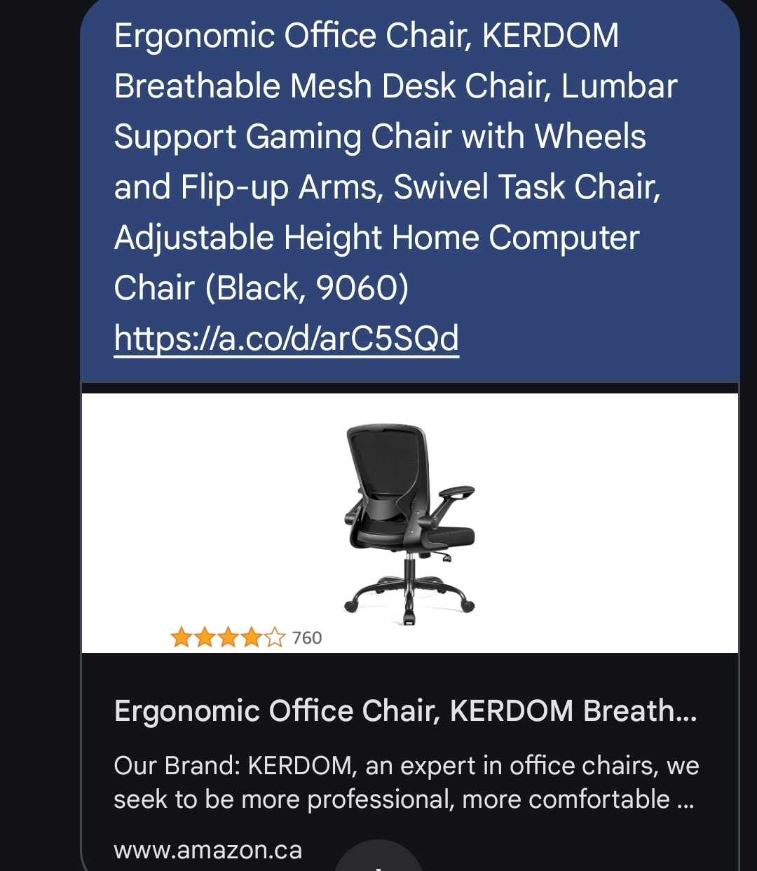 Ergonomic Office Chair, KERDOM Breathable Mesh Desk Chair, Lumbar Support Gaming Chair with Rocking Function, Wheels and Flip-up Arms, Swivel Task Chair, Adjustable Height Home Computer Chair (Black, 9060) https://a.co/d/arC5SQd