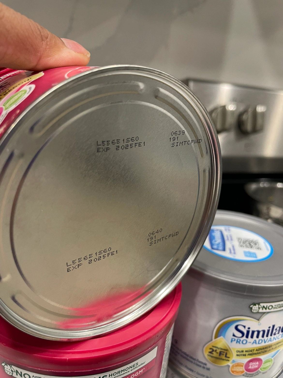 5 cans of Similac baby formula. 3 are Total Comfort and 2 are Pro-Advance. All have expiry dates in 2025