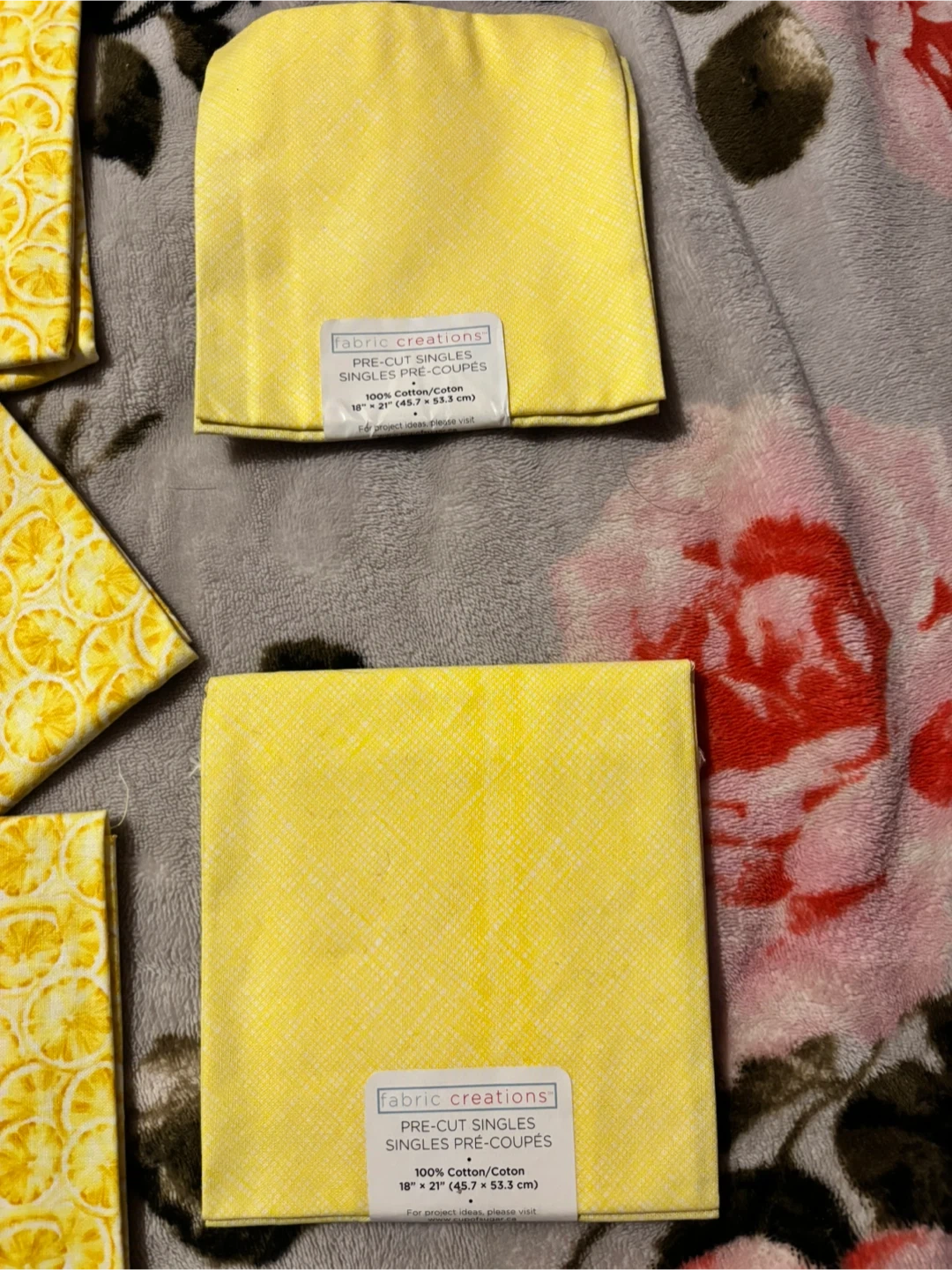 Add a splash of sunshine to your next sewing project with these Fabric Creations pre-cut fabric singles! These are new and ready to be transformed into something amazing. Each piece is 100% cotton and measures 18" x 21" (45.7 x 53.3 cm). Perfect for quilting, crafting, or any DIY project that needs a touch of sunny style.