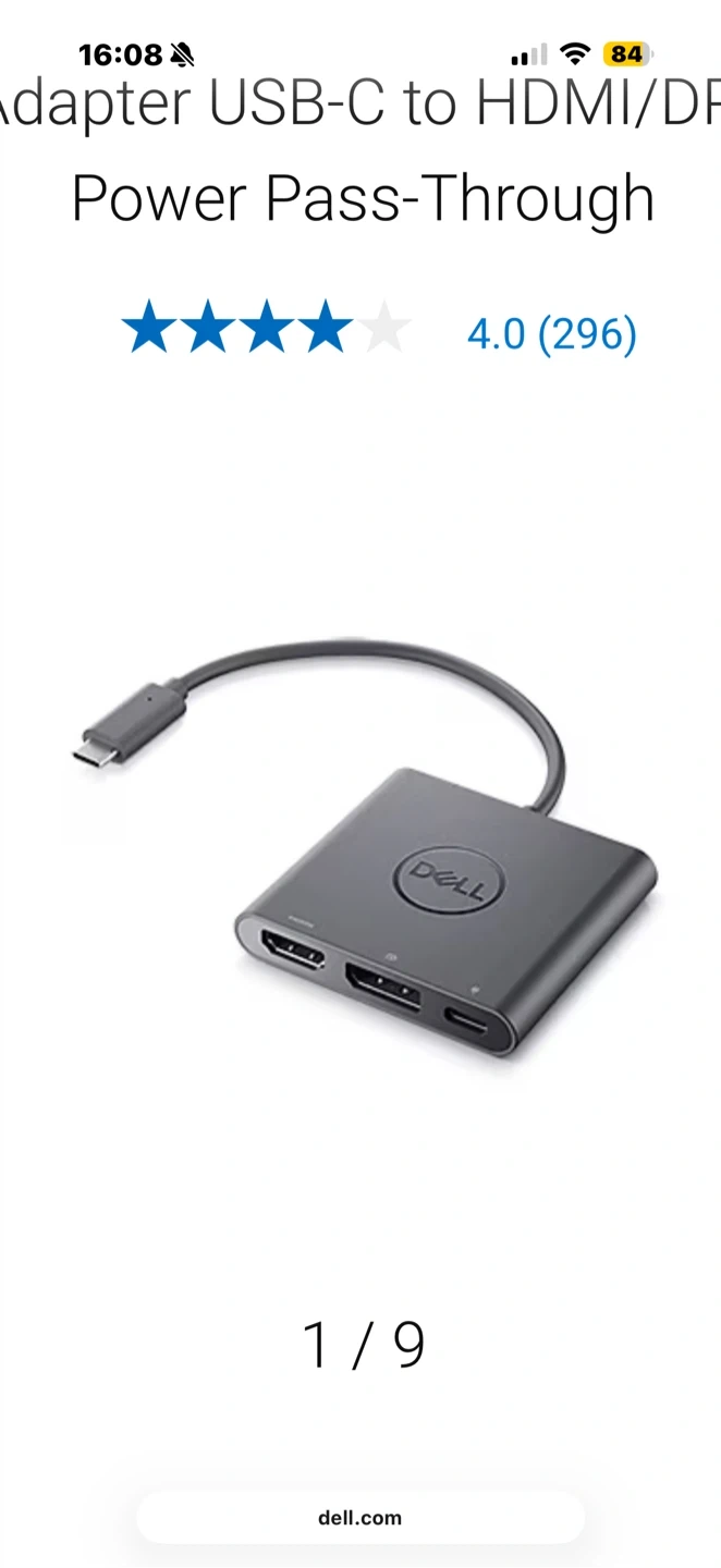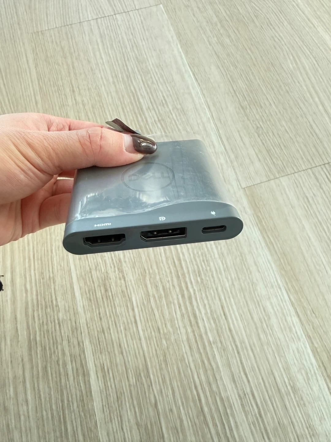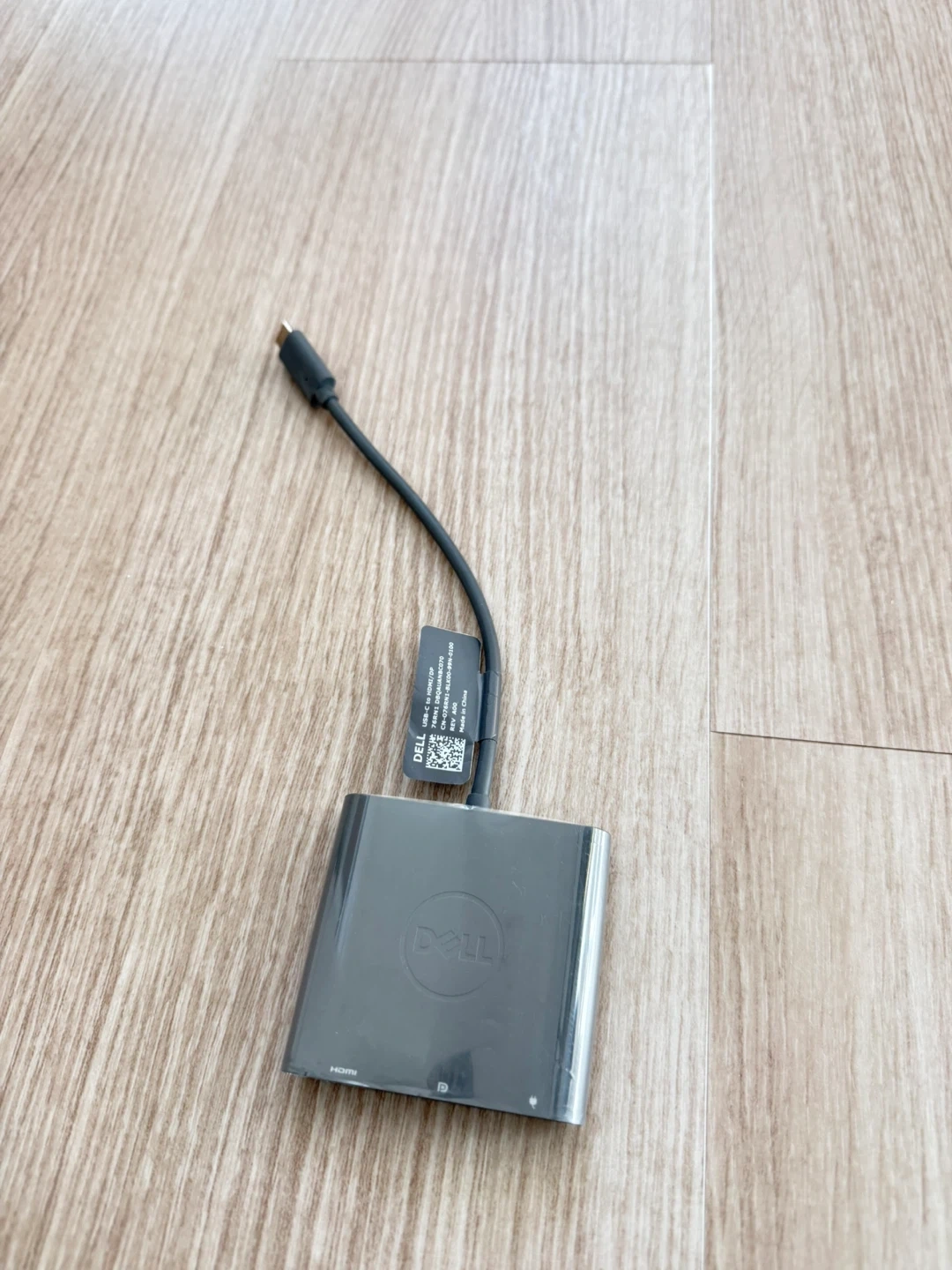 Selling a Dell Adapter USB-C to HDMI/DP with Power Pass-Through. It's in great condition and ready to use! Perfect for connecting your USB-C device to HDMI or DisplayPort displays while also providing power pass-through functionality