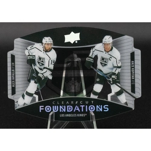 Card is from the 2020-2021 Upper Deck Clear Cut Foundations set, featuring Alex Iafallo and Anze Kopitar, card #CCF-KI. It will be shipped in a penny sleeve and top-loader. Feel free to message if you have any questions!
