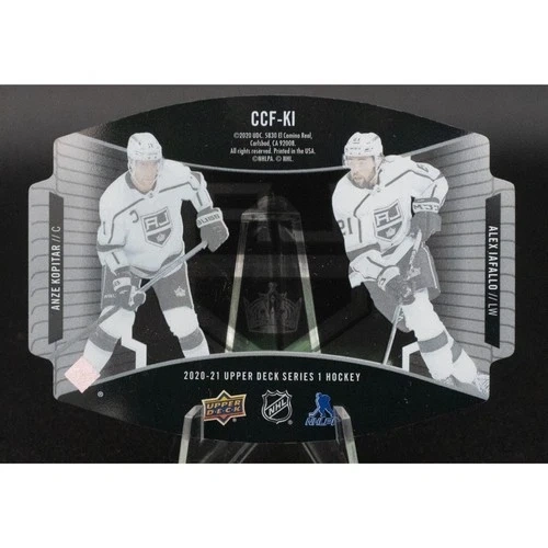 Card is from the 2020-2021 Upper Deck Clear Cut Foundations set, featuring Alex Iafallo and Anze Kopitar, card #CCF-KI. It will be shipped in a penny sleeve and top-loader. Feel free to message if you have any questions!