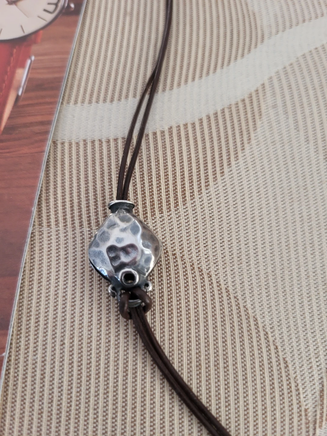 Silpada Hammered Silver Pendant Necklace Leather Cord