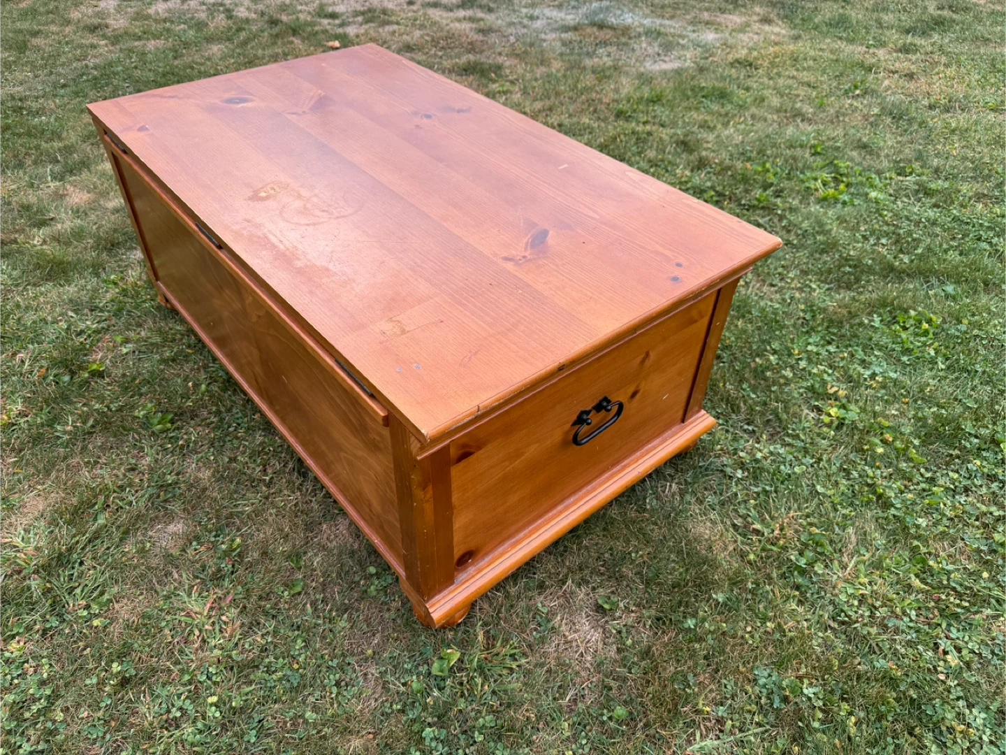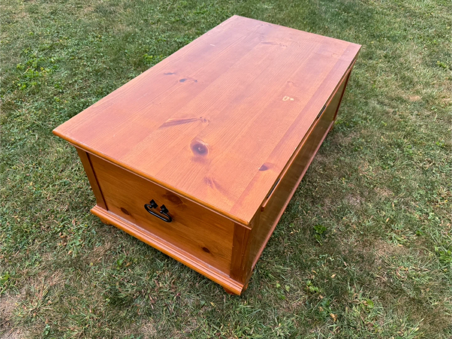 This is a lovely wooden storage chest. It has a drawer and a hinged top for ample storage. The chest is in good condition and would be a great addition to any room