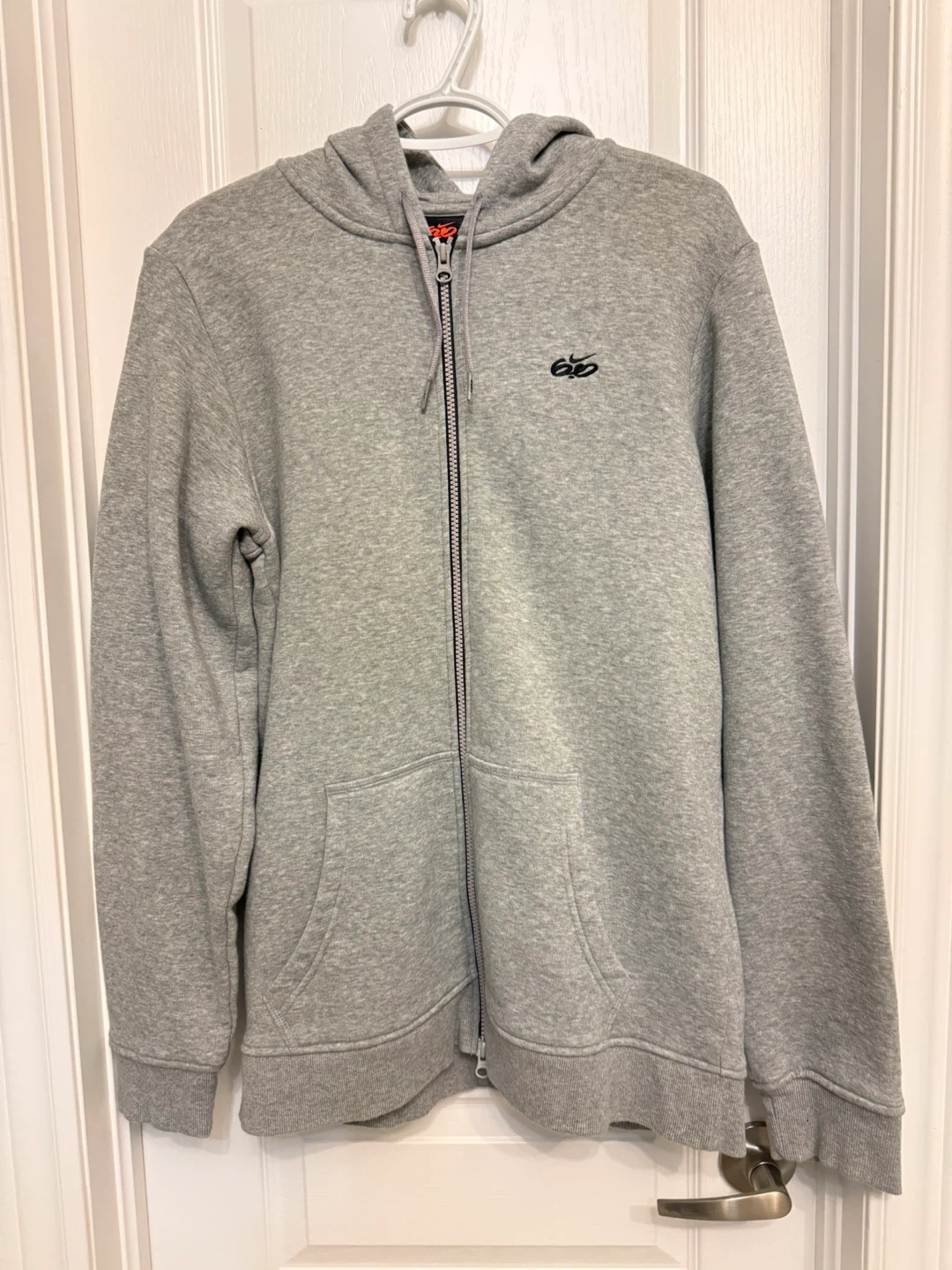 Selling a Nike SB full zip hoodie in grey. It's in great condition and a comfortable fit for size medium. Perfect for layering or wearing on its own!