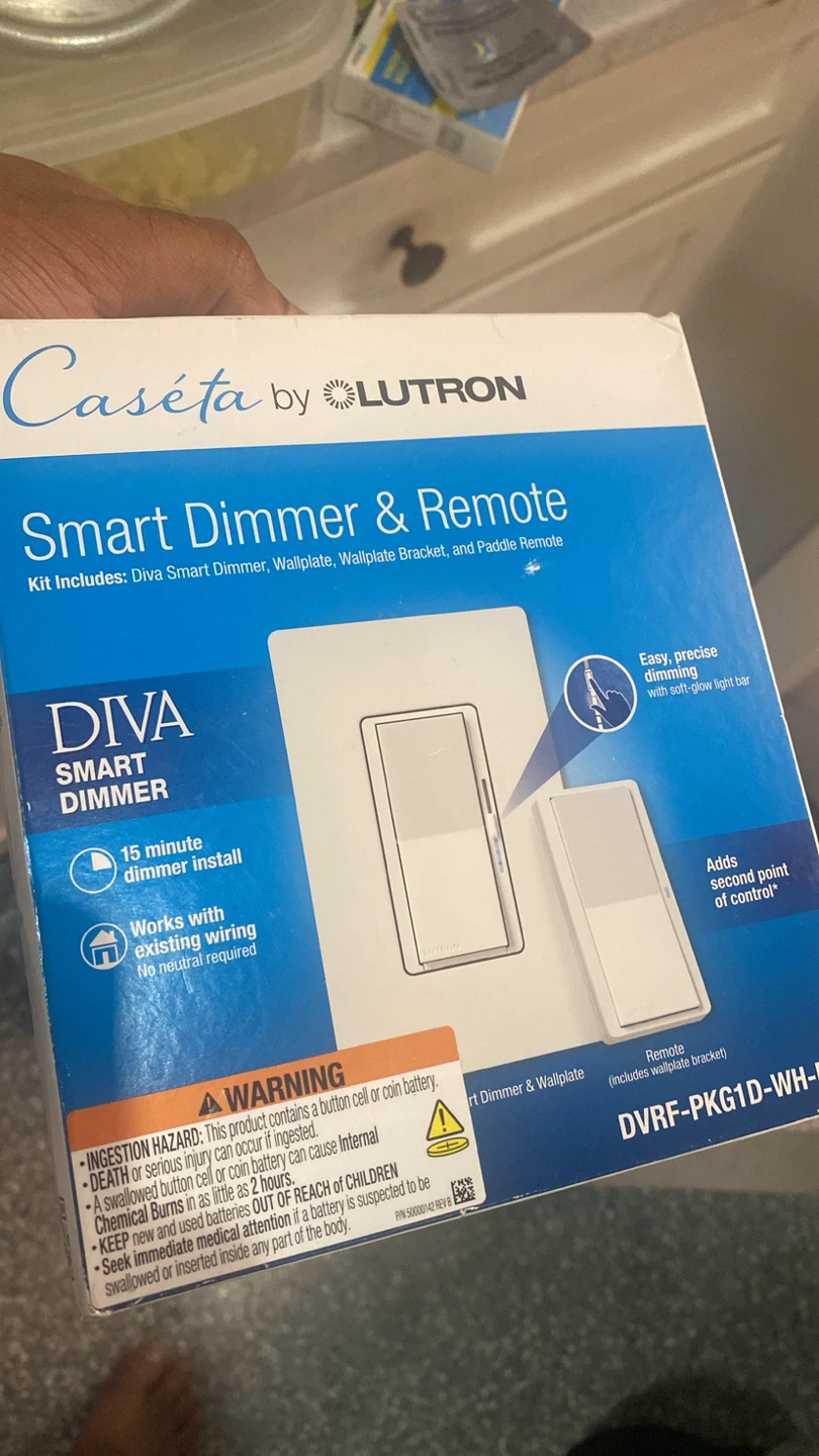 Selling a Lutron Caseta Diva Smart Dimmer & Remote Kit! This kit includes the Diva Smart Dimmer, wallplate, wallplate bracket, and paddle remote. It features easy, precise dimming with a soft-glow light bar and adds a second point of control. It also works with existing wiring and doesn't require a neutral wire, making it easy to install in just 15 minutes