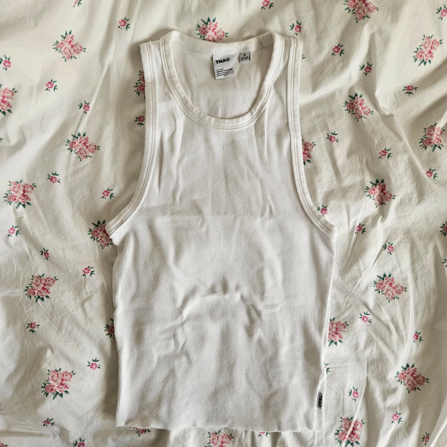 Aritzia TNA Homestretch Crew Tank, White, Size S