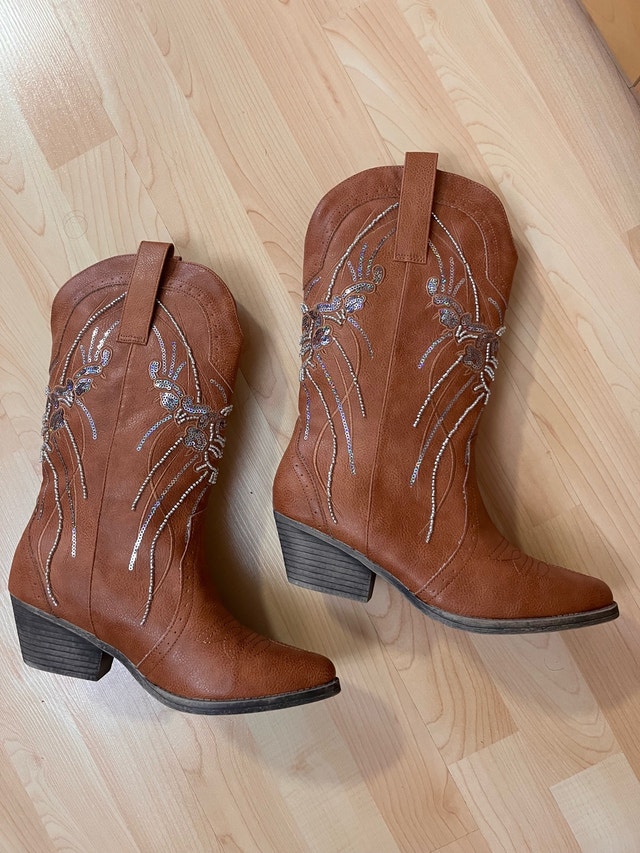 Brand NEW Cowboy Western Style Boots with Sequin and Beads Embellishment. Located near McCowan and Sheppard area in Scarborough. Size 7. Cashless payment and cash accepted.