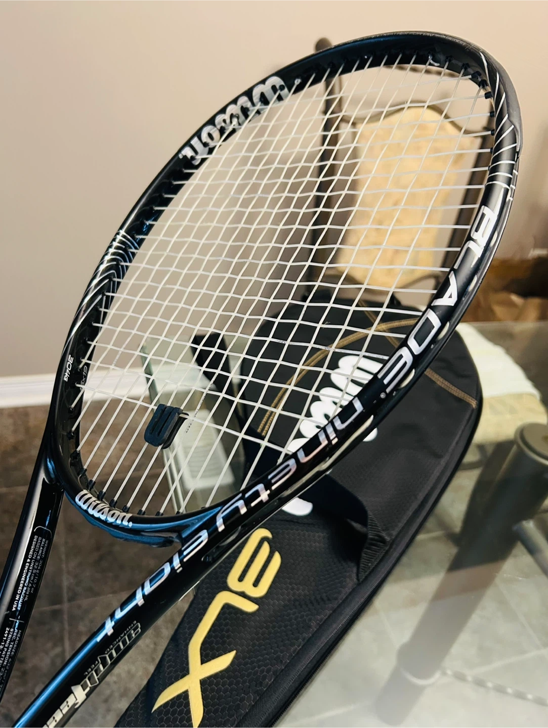 This Performance is Good for Advanced Players who prefer sharper and more stable response. Mint condition comes with Wilson BLX Carrying Bag.