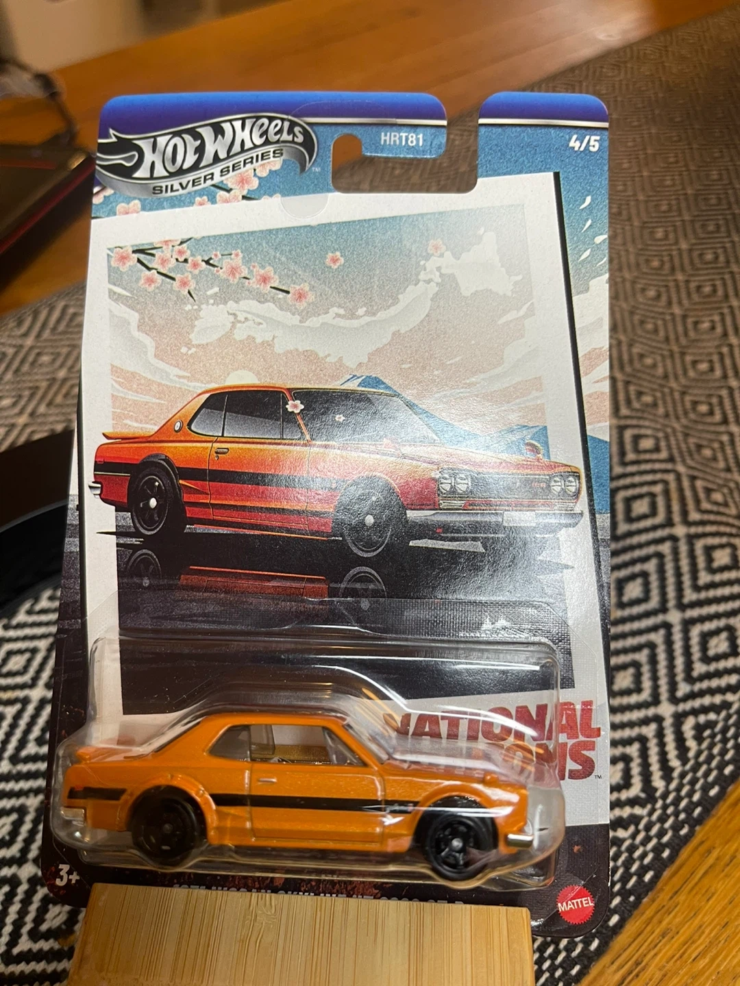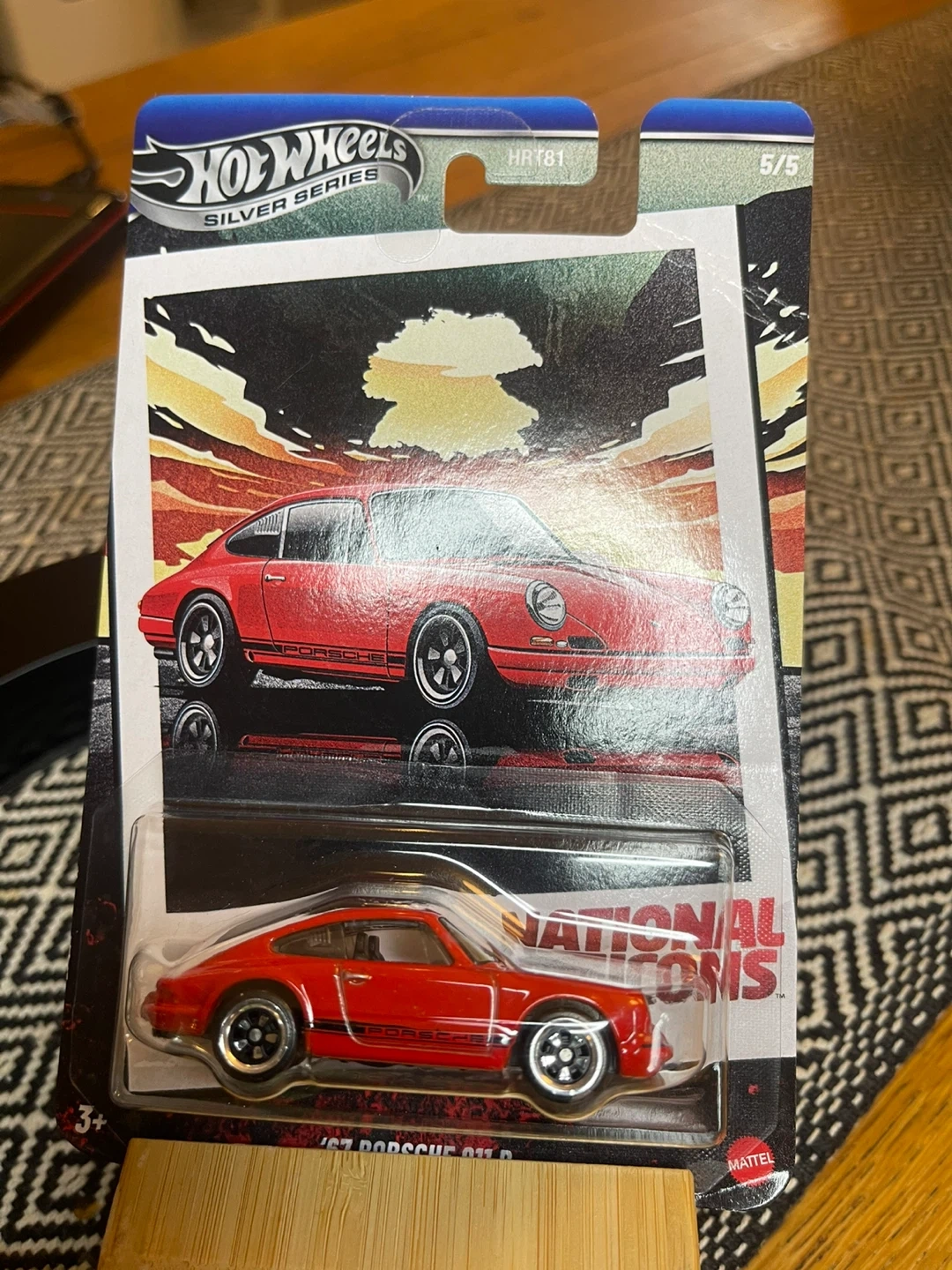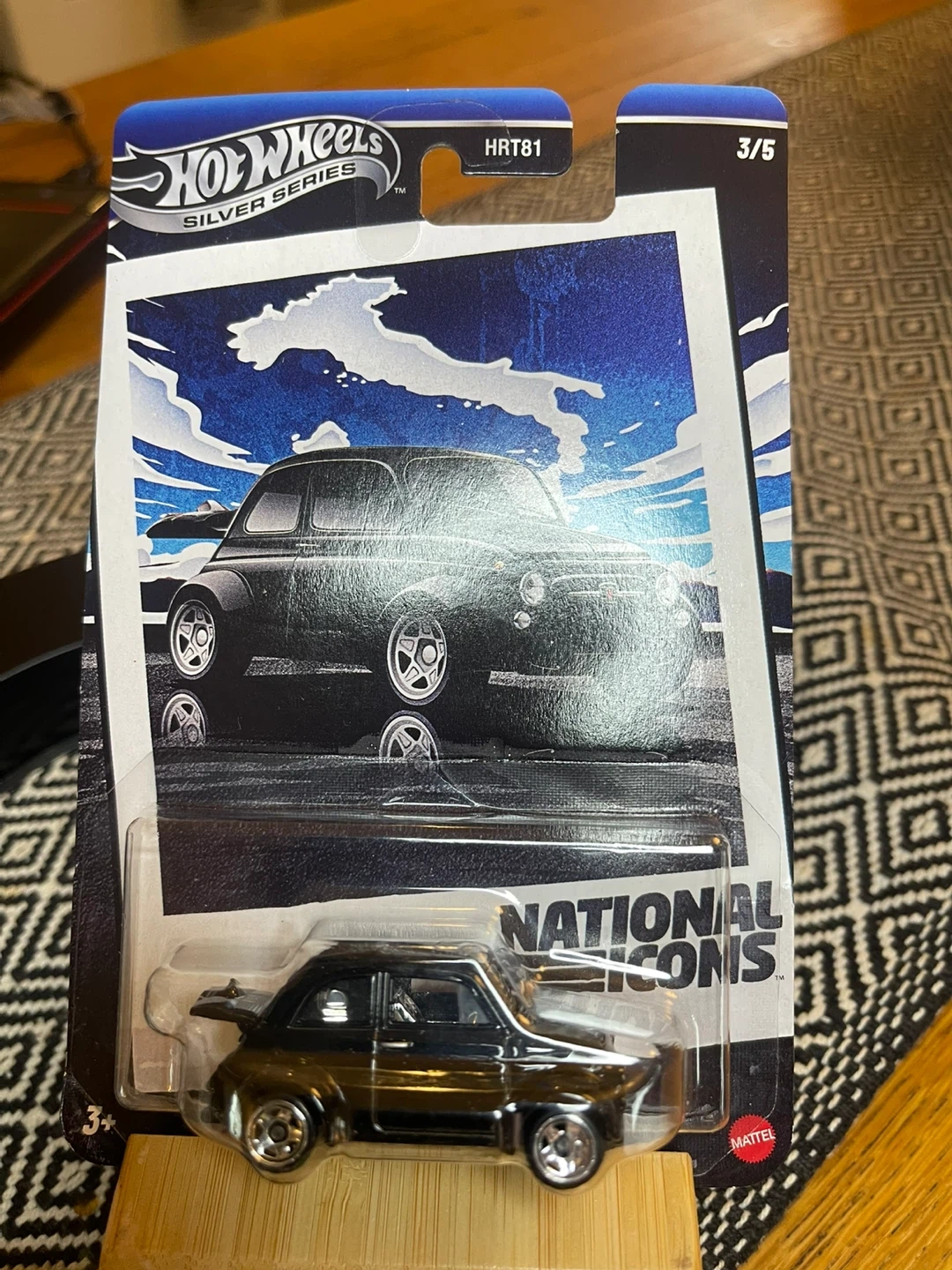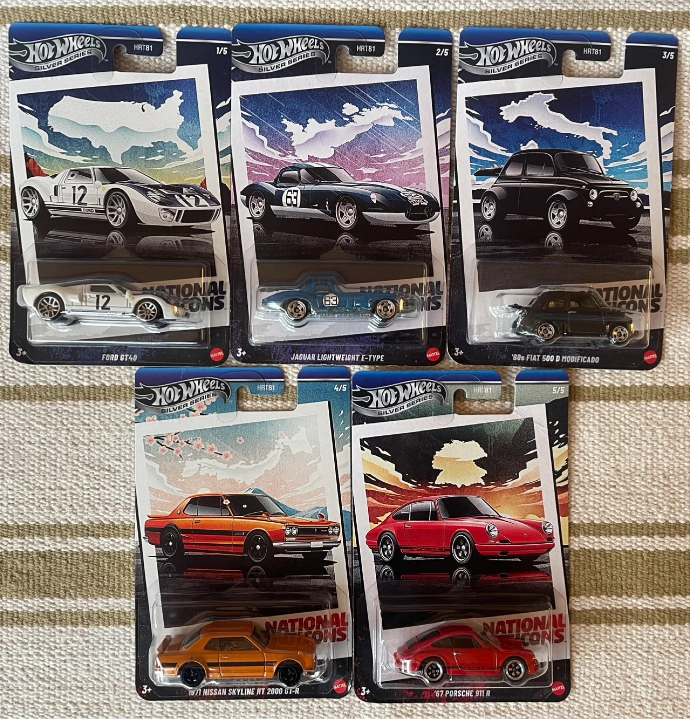 This Hot Wheels Silver Series 'National Icons' collection features collectible die-cast cars. Each car is presented in its original packaging with detailed artwork. It's a great addition for collectors!