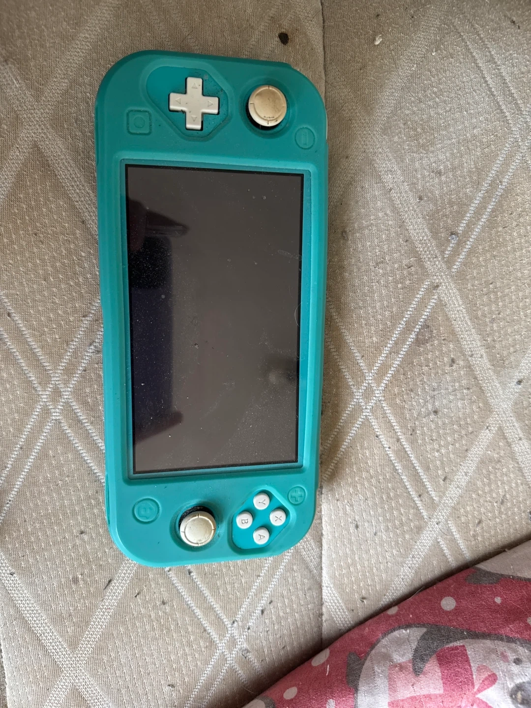 This is a Nintendo Switch Lite in turquoise. It's a handheld-only console. Great for gaming on the go!