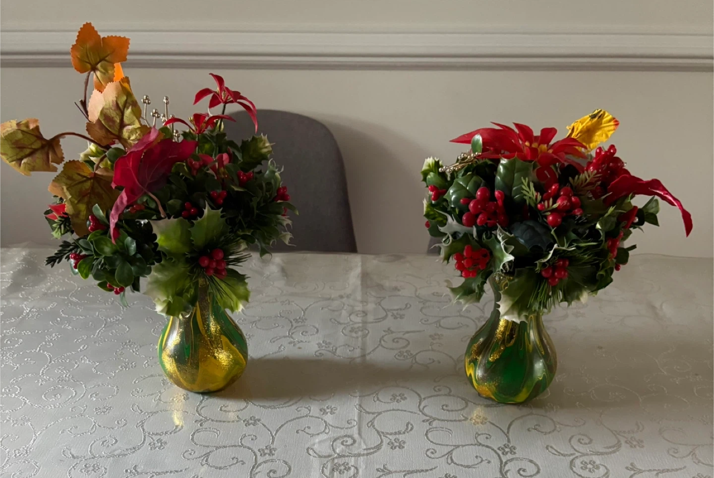 Selling two artificial flower arrangements. They are perfect for adding a touch of color to any room. The flowers are in excellent condition and come in a decorative vase.