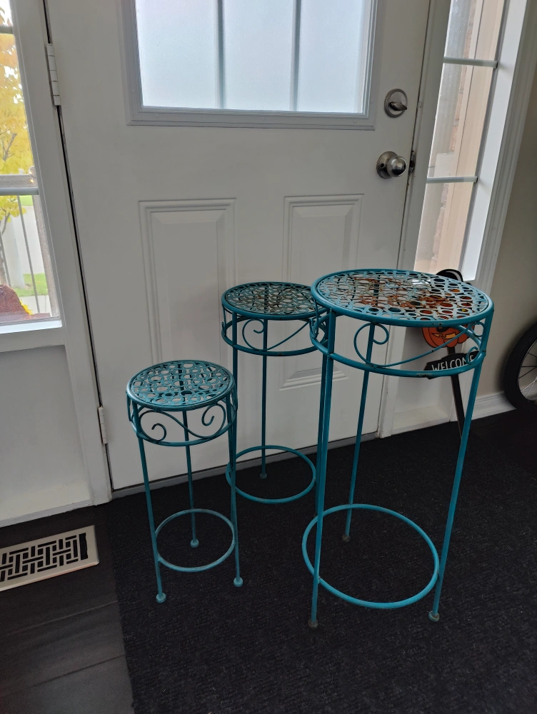 Set of 3 Teal Metal Plant Stands