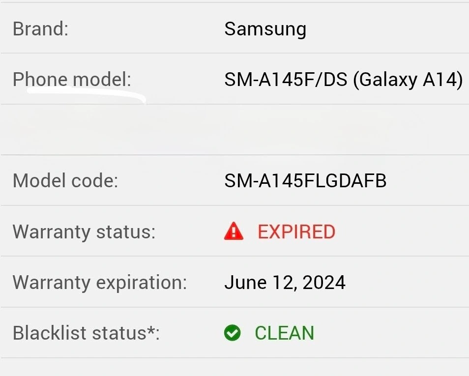 Selling a Samsung Galaxy A14, model number SM-A145F/DS. The phone is in clean condition.