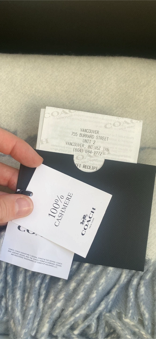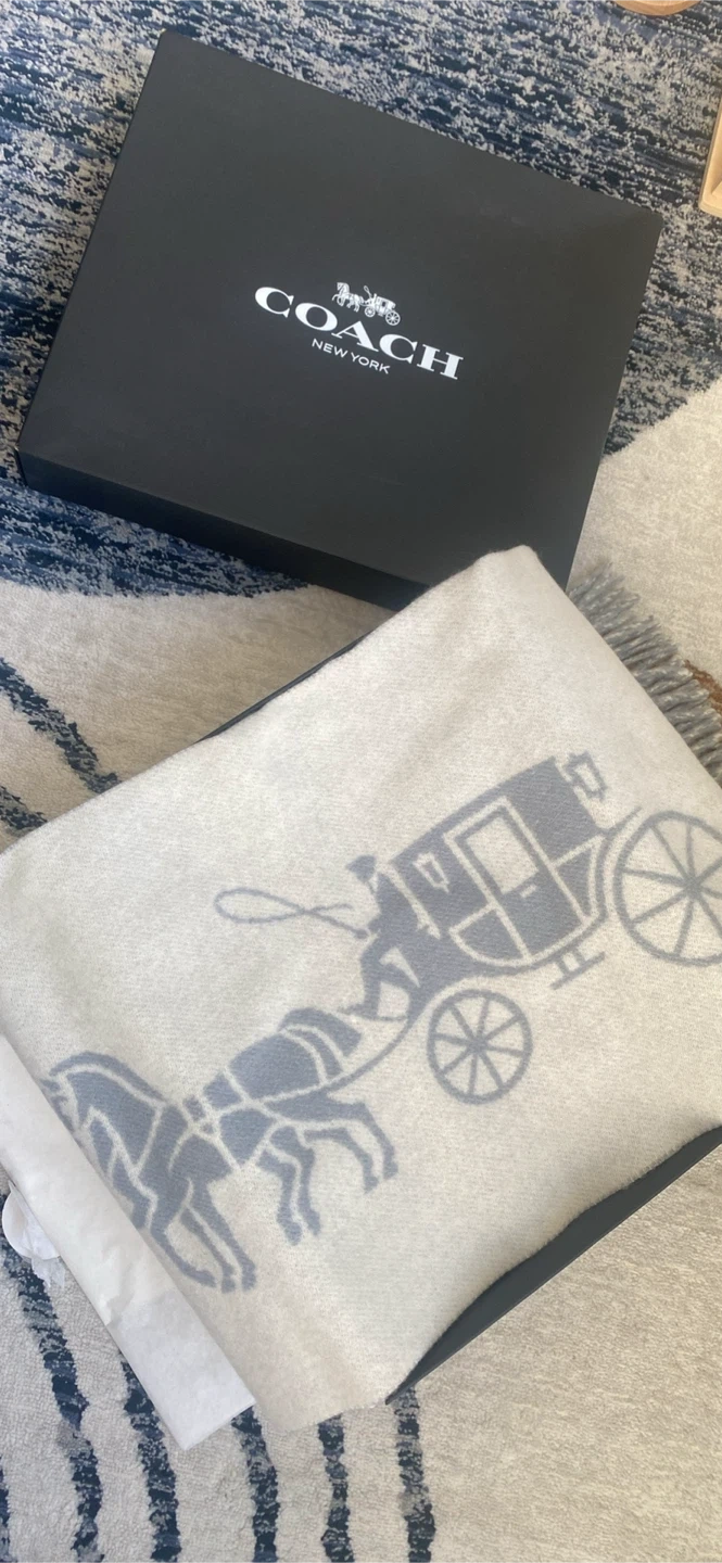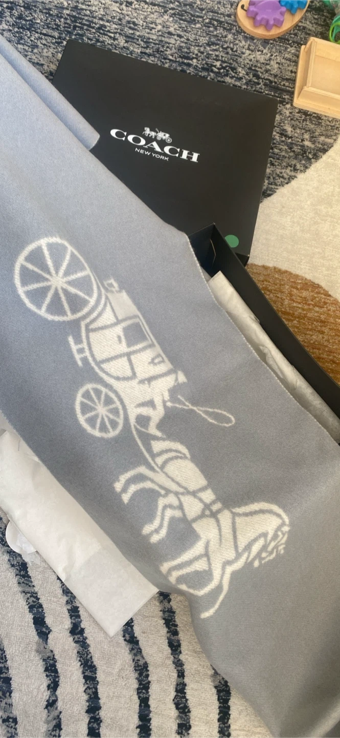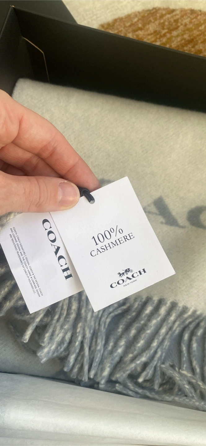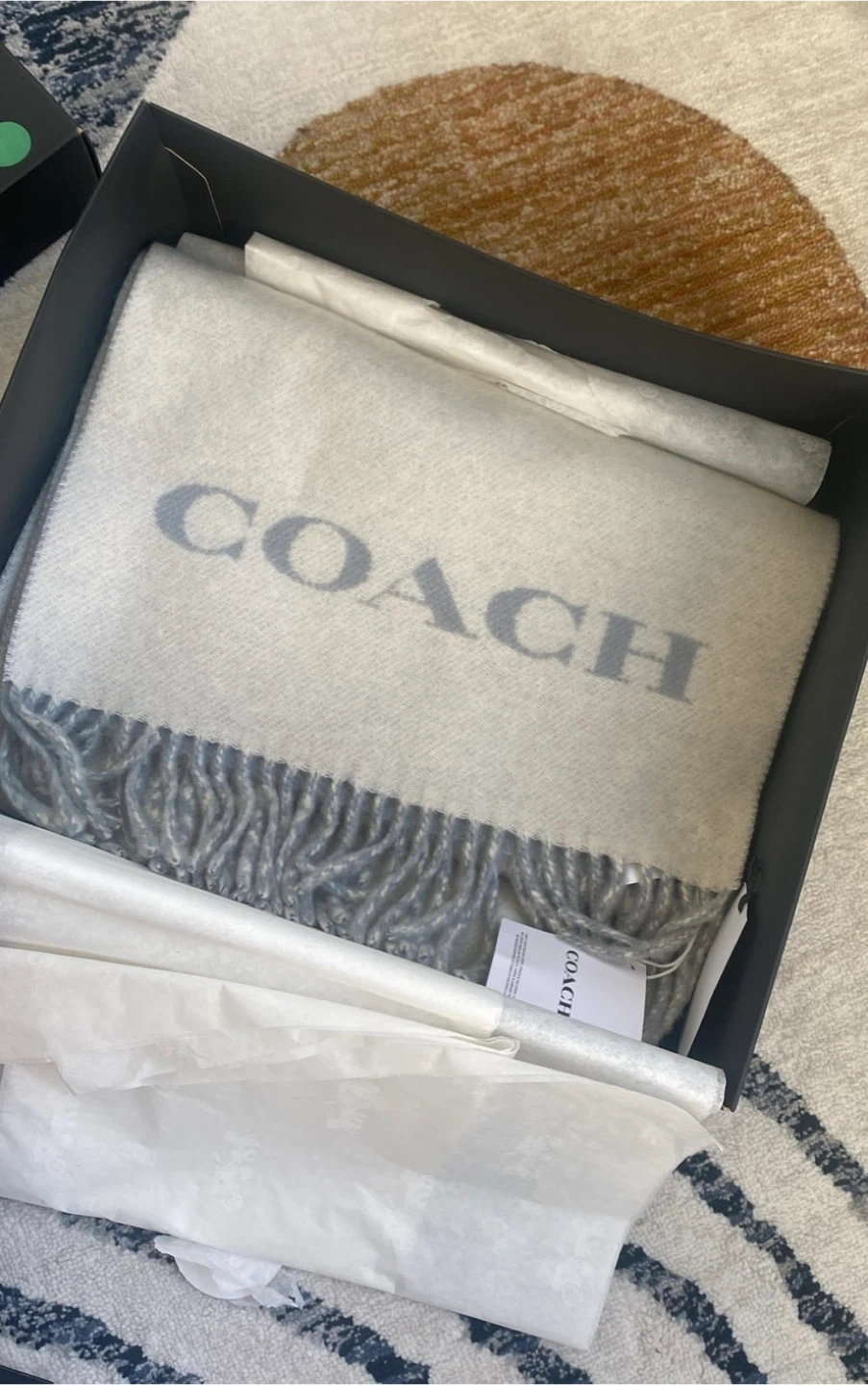 60Selling a brand new Coach scarf made of 100% cashmere! It's a beautiful, soft grey and dark grey colour with the iconic Coach horse and carriage logo. Comes in the original box, perfect for gifting or treating yourself