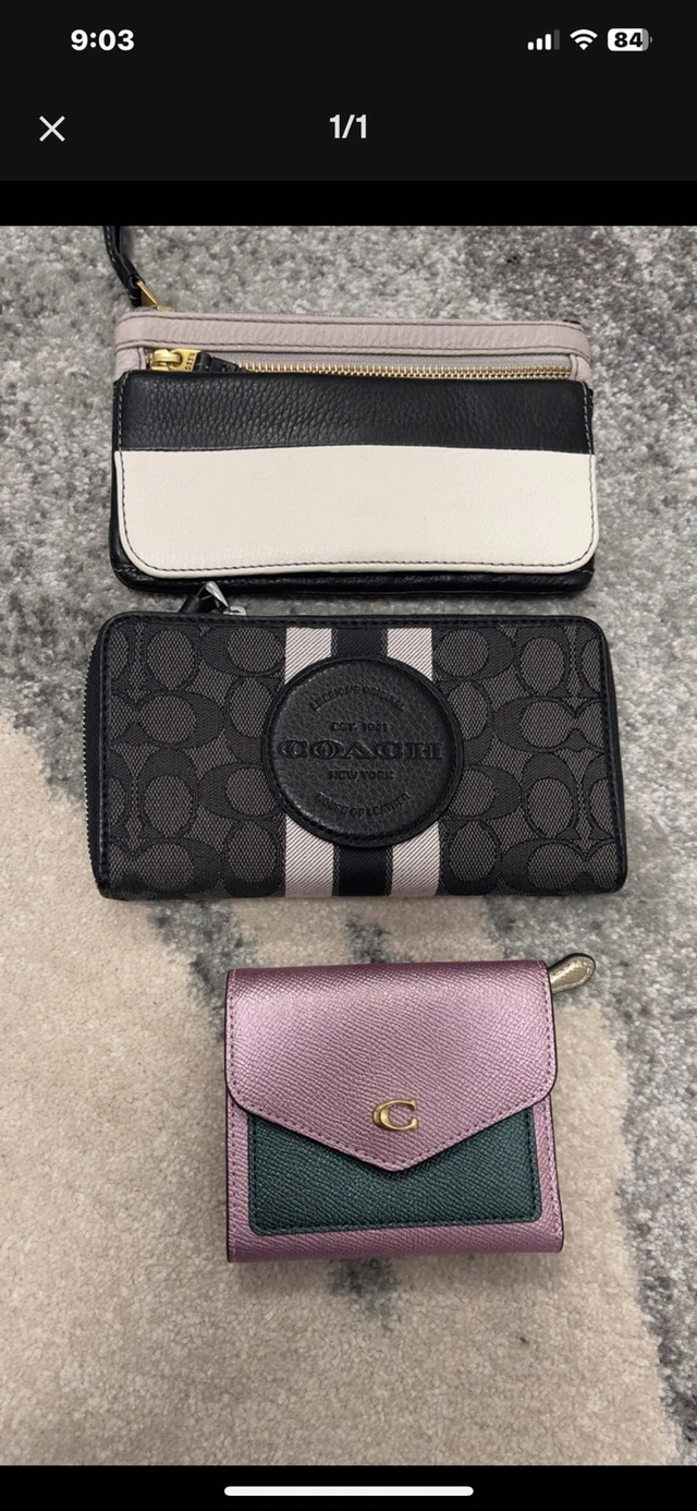 19I'm offering Coach and Fossil wallets, perfect for adding a touch of designer flair to your everyday essentials! * Durable construction * Stylish designs from Coach and Fossil * Ample space for cards, cash, and coins and phone.