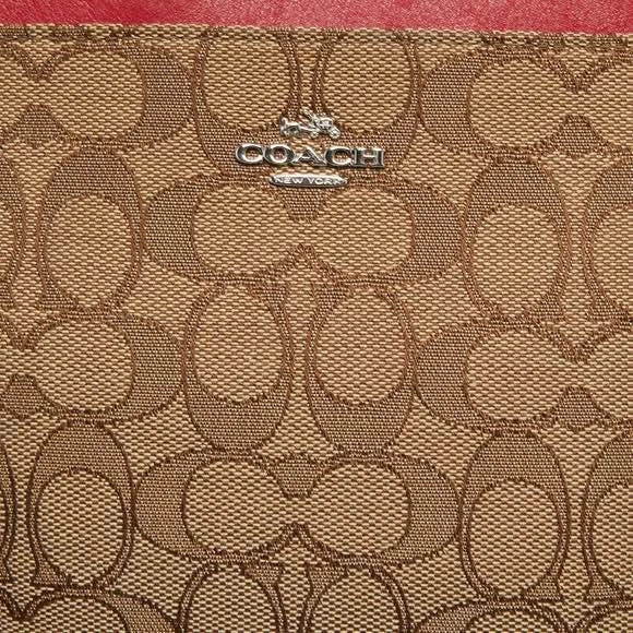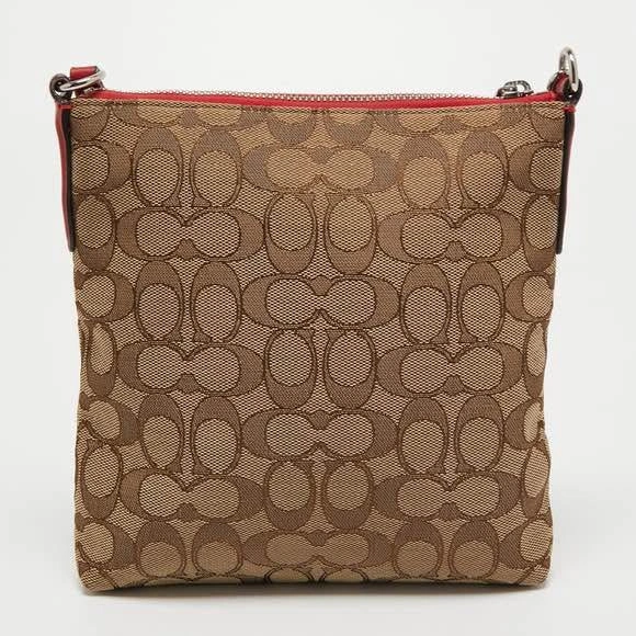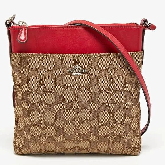 COACH Beige/Red Signature Jacquard Crossbody Bag
