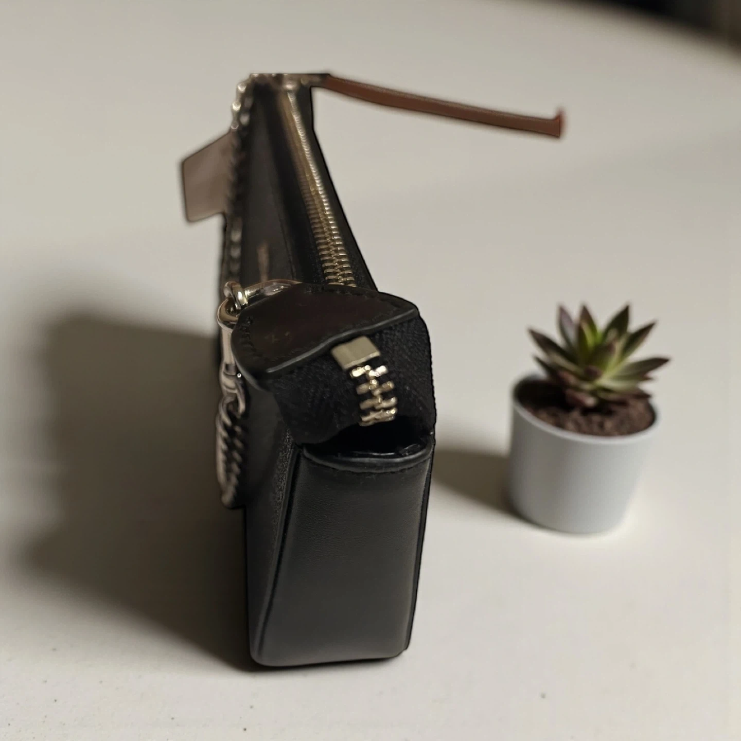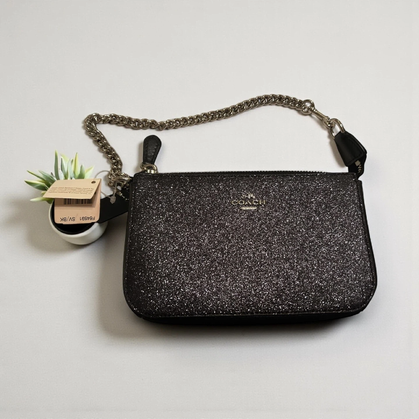 10Selling a cute Coach wristlet in black glitter. It's perfect for a night out or when you just want to carry the essentials. The wristlet has a chain strap. It's in great condition!