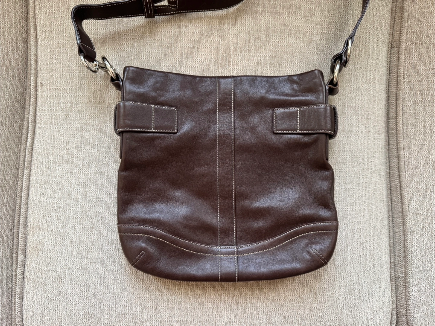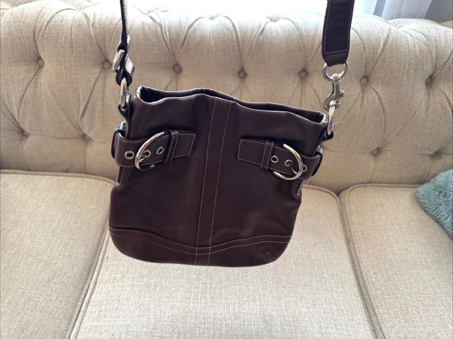 15Selling authentic Coach crossbody bag. Brown colour bag. Preowned good condition. Couple small wear spots that are barely noticeable. Please refer to images for current condition. Open for offers. #brownbag #crossbodybag #brownbag #leatherbag #womenscrossbodybag