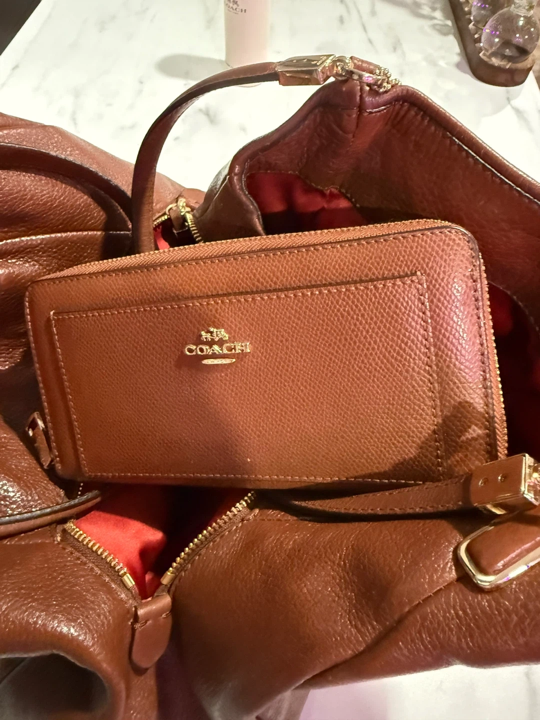 Selling a Coach leather purse, wallet, and leather moisturizer! The purse is a lovely brown colour with a red interior. The wallet matches perfectly and is in great condition. I'm also including a Coach leather moisturizer to keep your items looking their best. Cash only please.