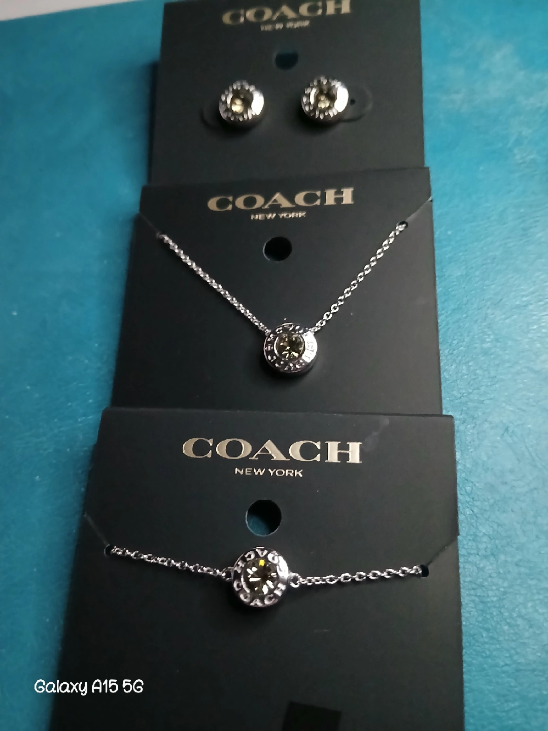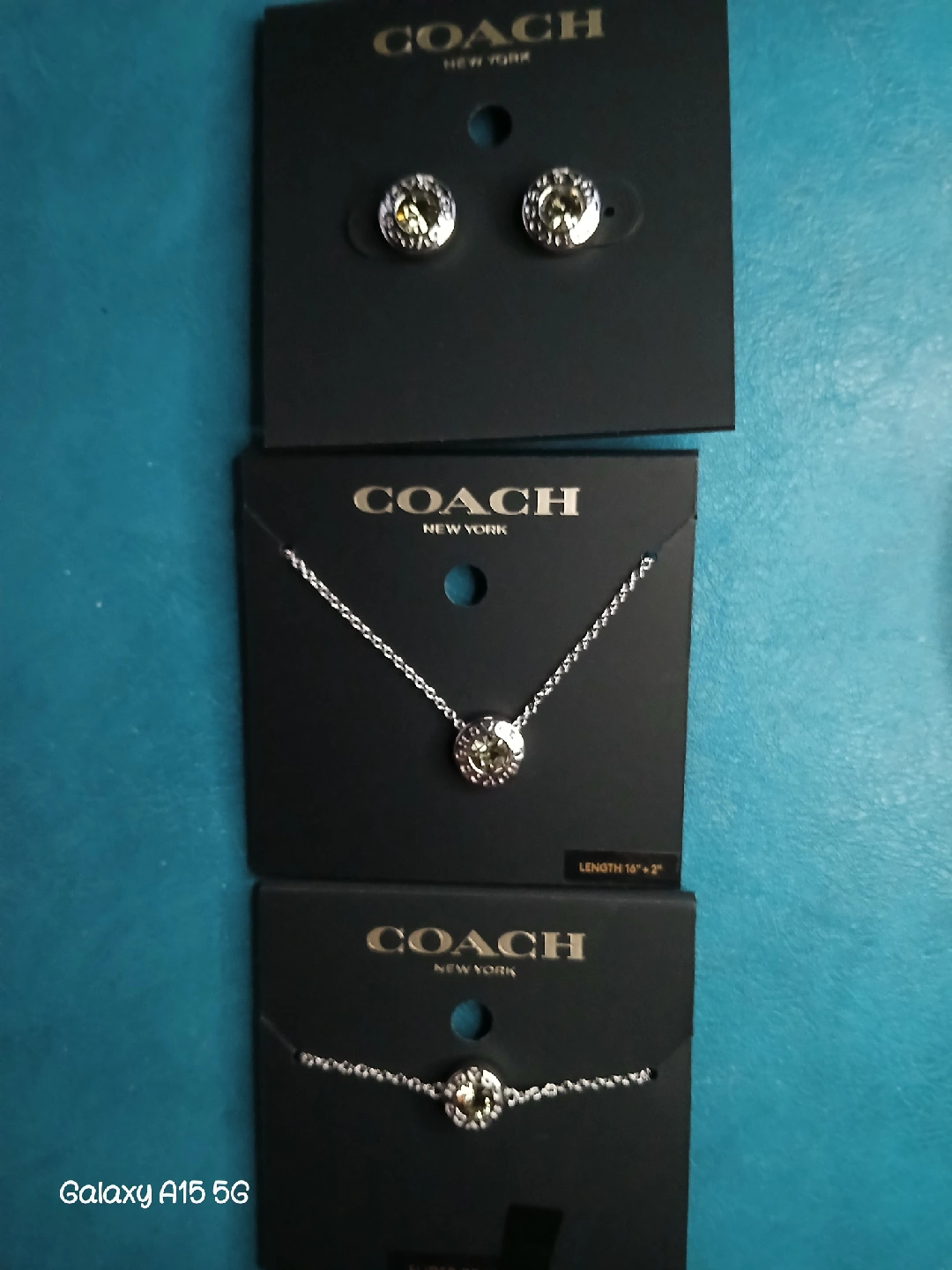 Selling a brand new Coach New York jewelry set, stone color is Citrine! This includes a pair of earrings, a necklace with a length of 16" + 2", and a slider bracelet. All items have only been taken out of packing in order to take photos. *(prefer to sell as whole set, although open to offers by piece)