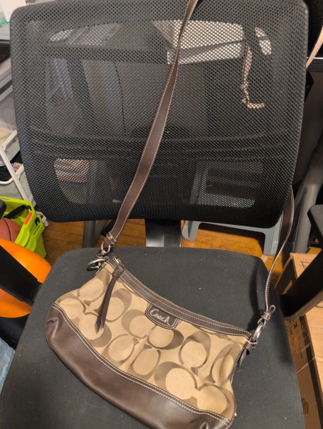31Selling a cute Coach handbag in brown signature print! It's in great condition and ready for a new home. Perfect for everyday use or a night out